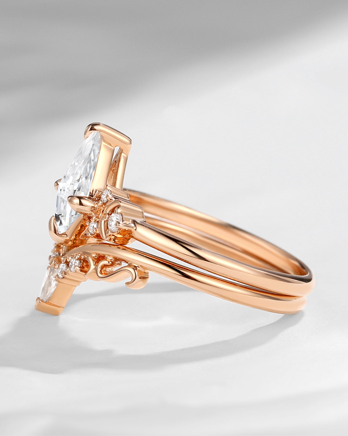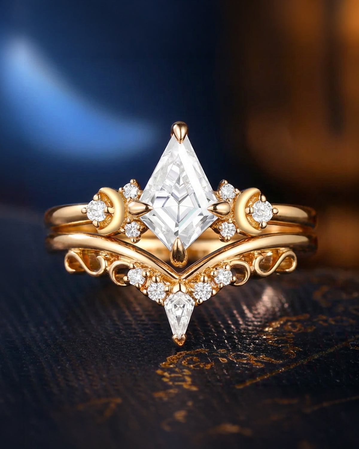 Crescent Moon | Pear Cut Moonstone Galaxy Engagement Ring Set 2PCS 18K