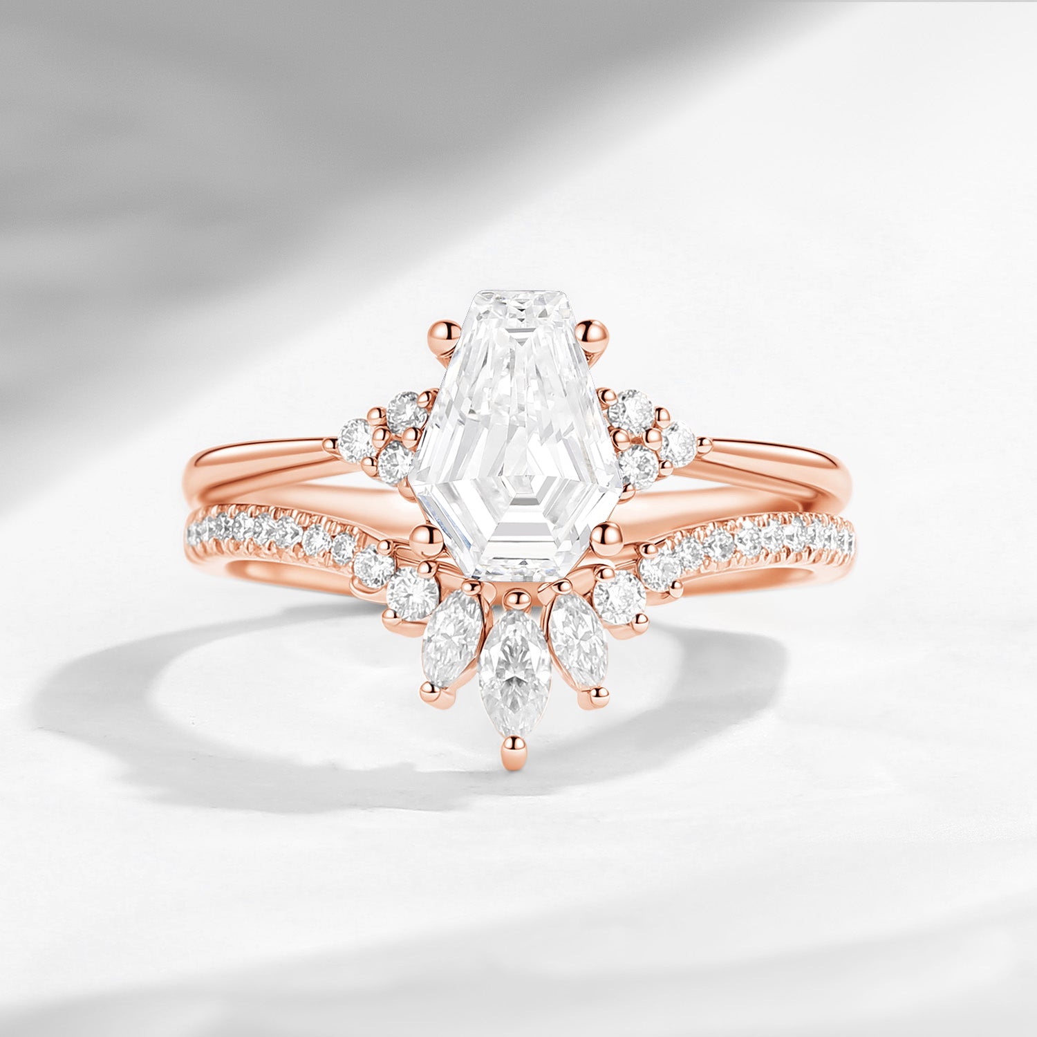 1.0-2.0ct Classic Coffin Cut Lab Diamond Engagement Set 2pcs - White Dress