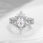 1.5ct Oval Moissanite Vintage Inspired Bridal Set 3pcs