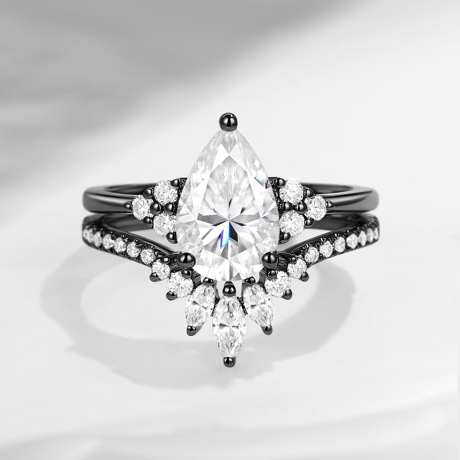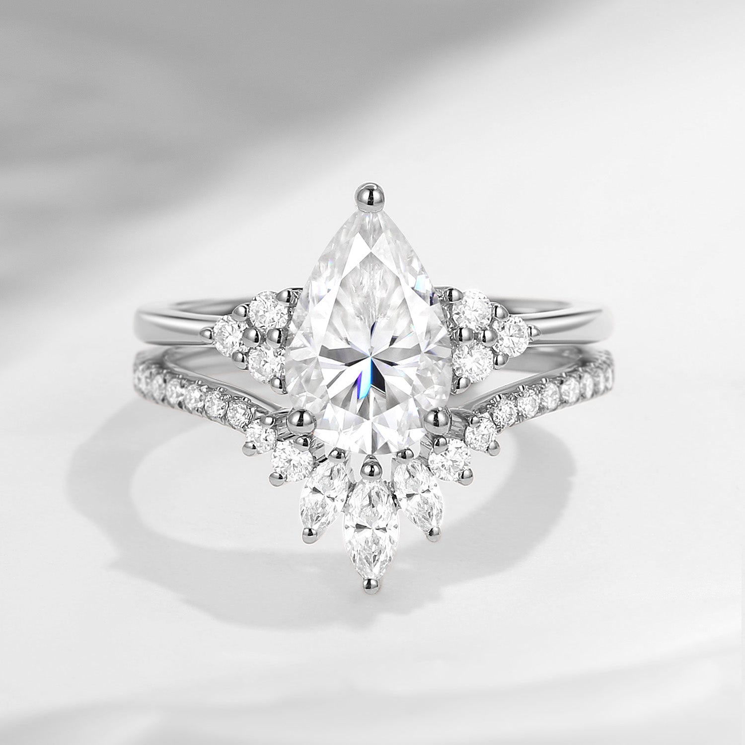 1.5ct Pear Shaped Classic Cluster Moissanite Engagement Ring Set 2pcs - Vivian
