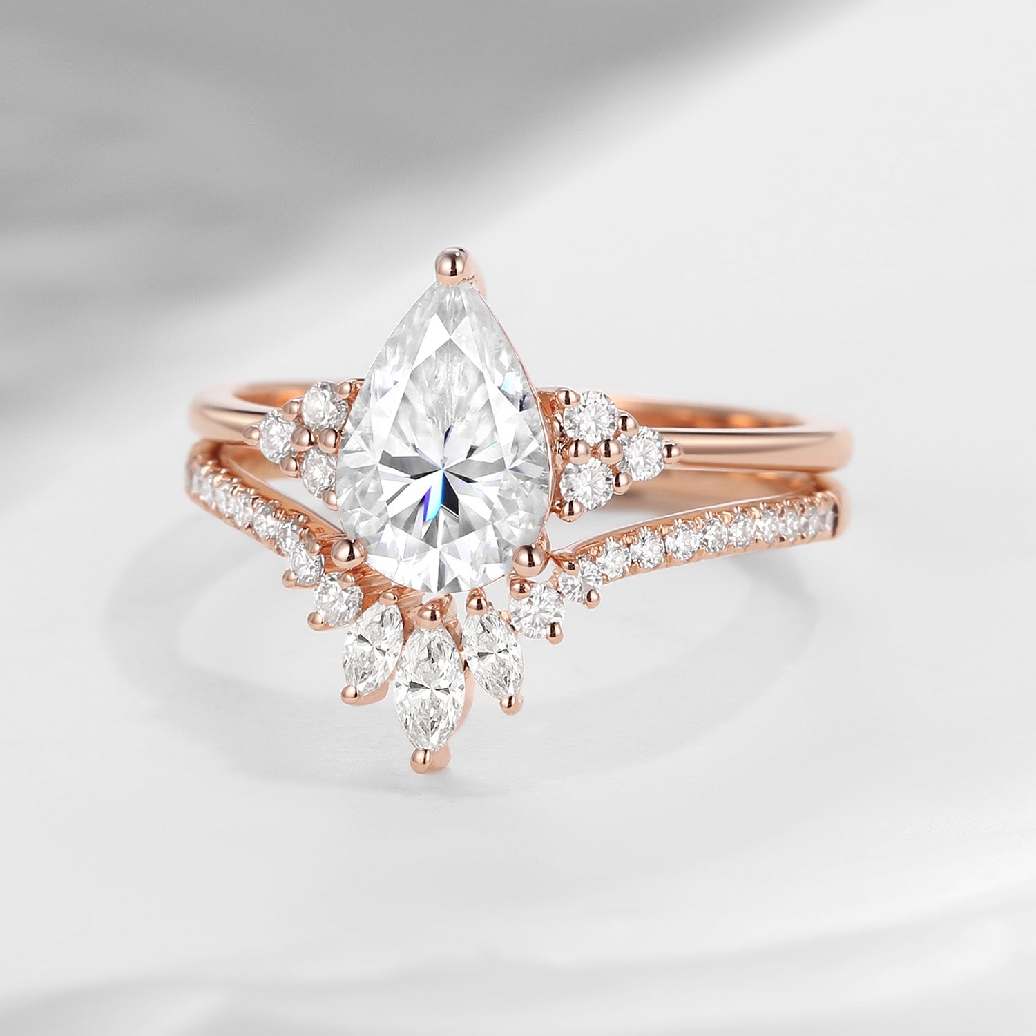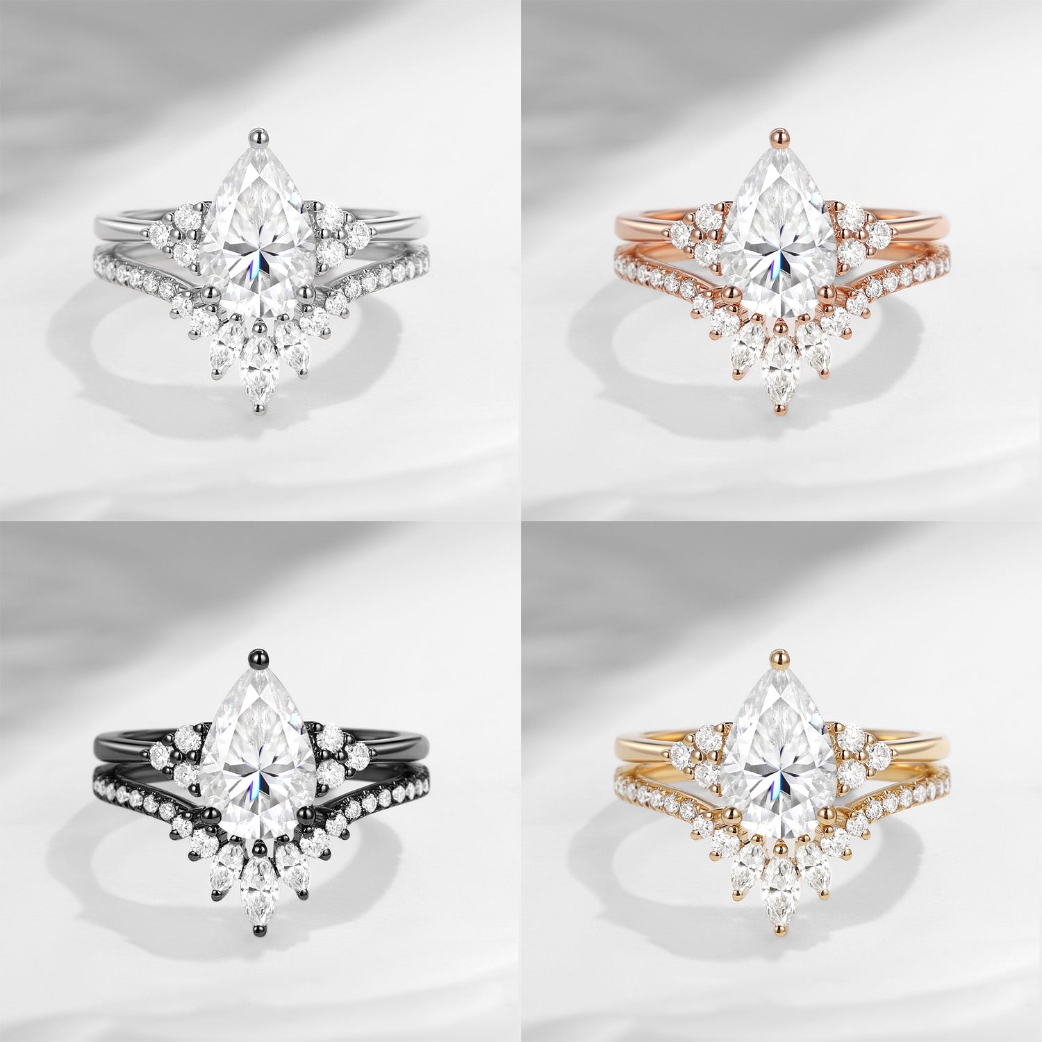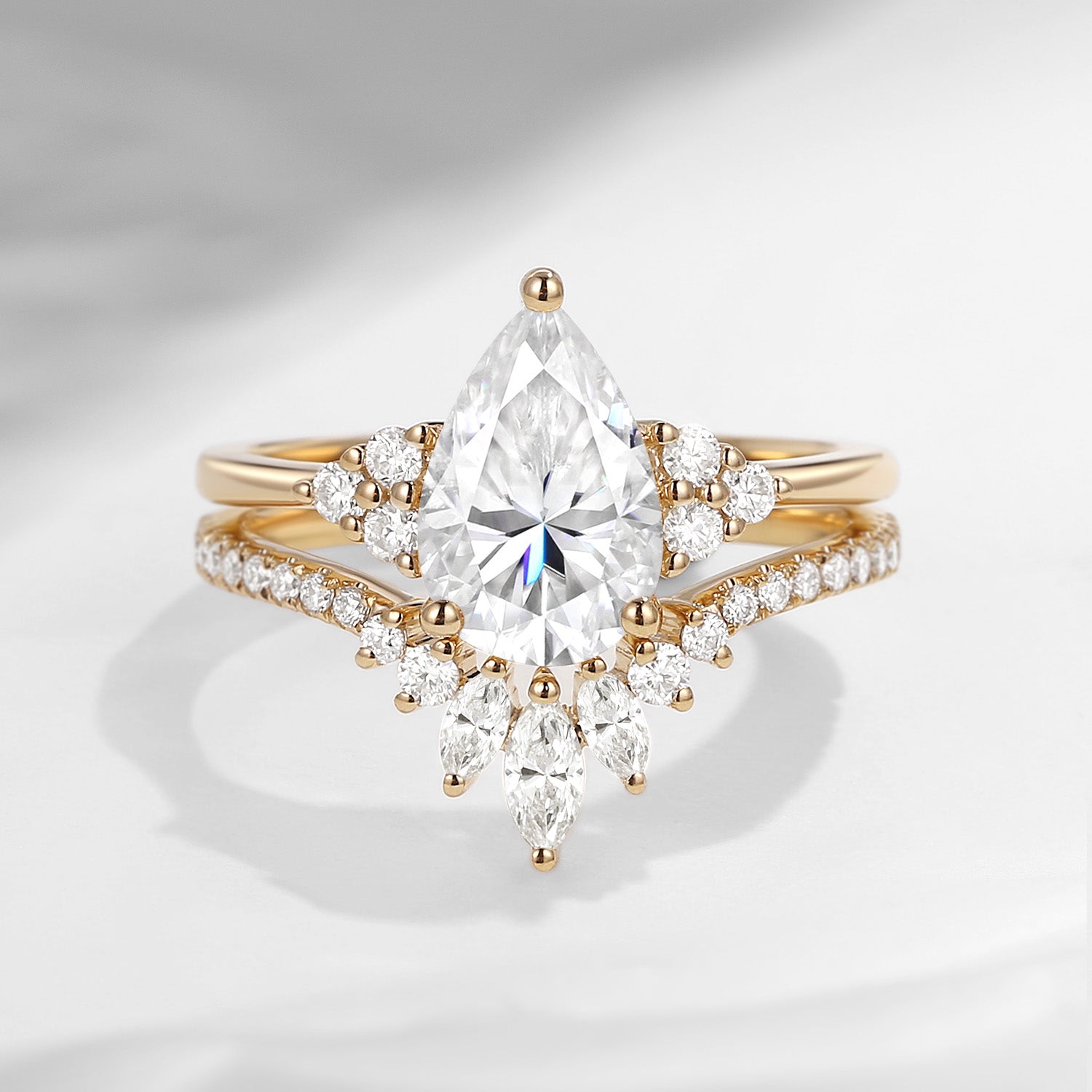 Pear Shaped Classic Cluster Engagement RIng Set 2pcs - Vivian Moissanite Engagement Rings Moissanite Wedding Rings