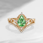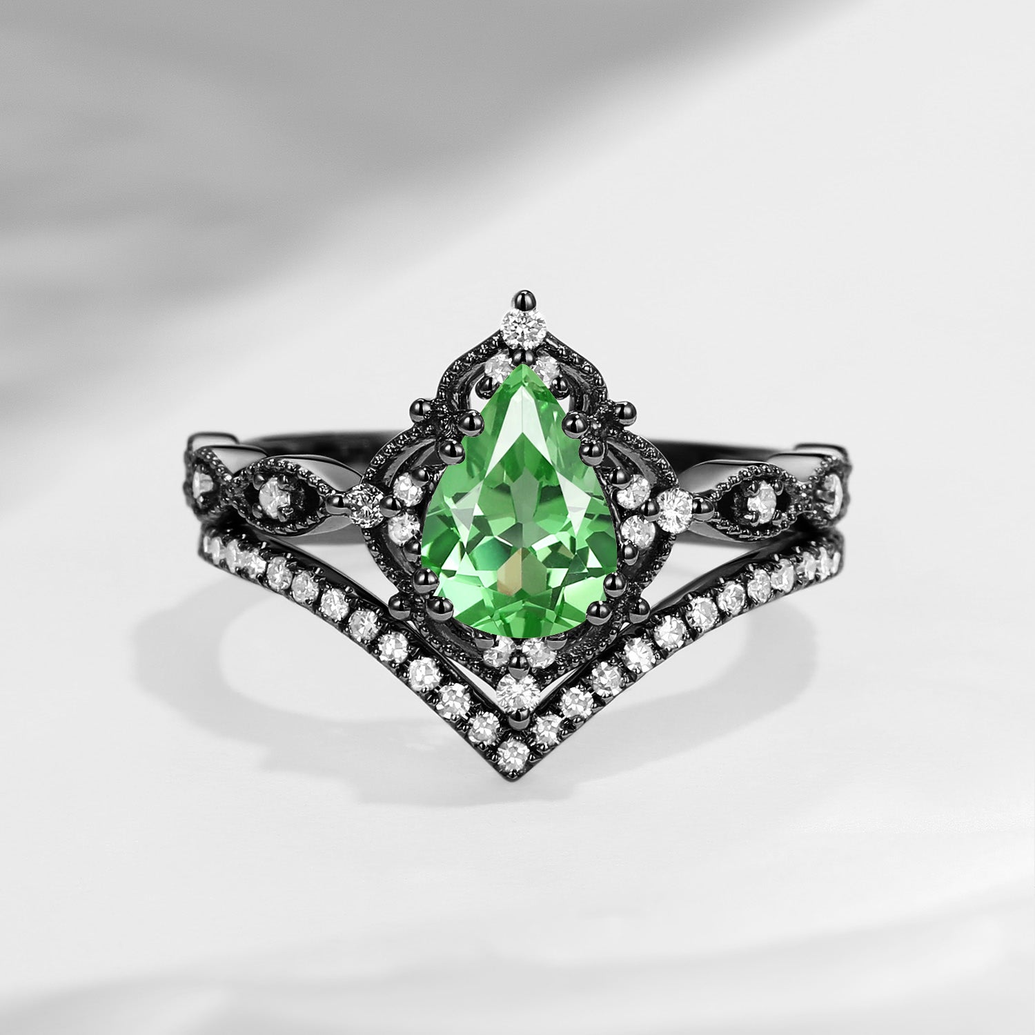 1.5ct Pear Shaped Lab Tsavorite Engagement Ring Set 2pcs - Evelyn