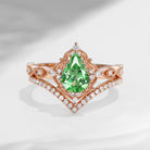 1.5ct Pear Shaped Lab Tsavorite Engagement Ring Set 2pcs Rose Gold Chevron Paved Wedding Ring Women Flower Vintage Inspired Ring 'Evelyn'