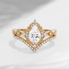 1.5ct Pear Shaped Moissanite Engagement Ring Set 2pcs - Evelyn