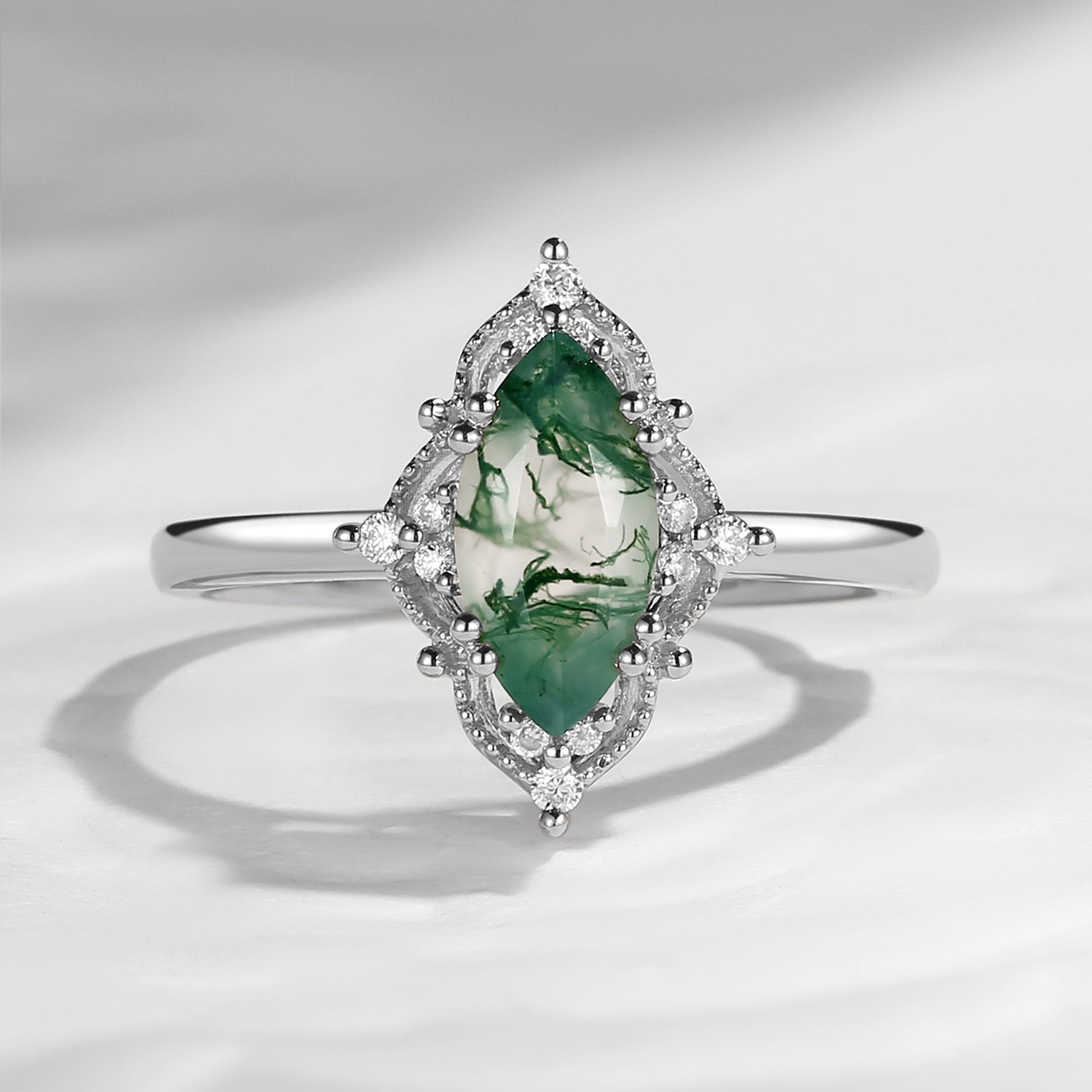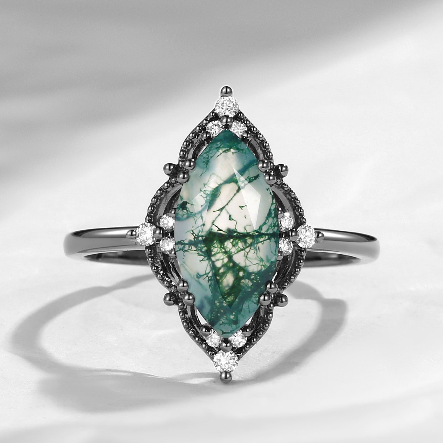 2.5ct 18K Marquise Vintage Inspired Moss Agate Engagement Ring