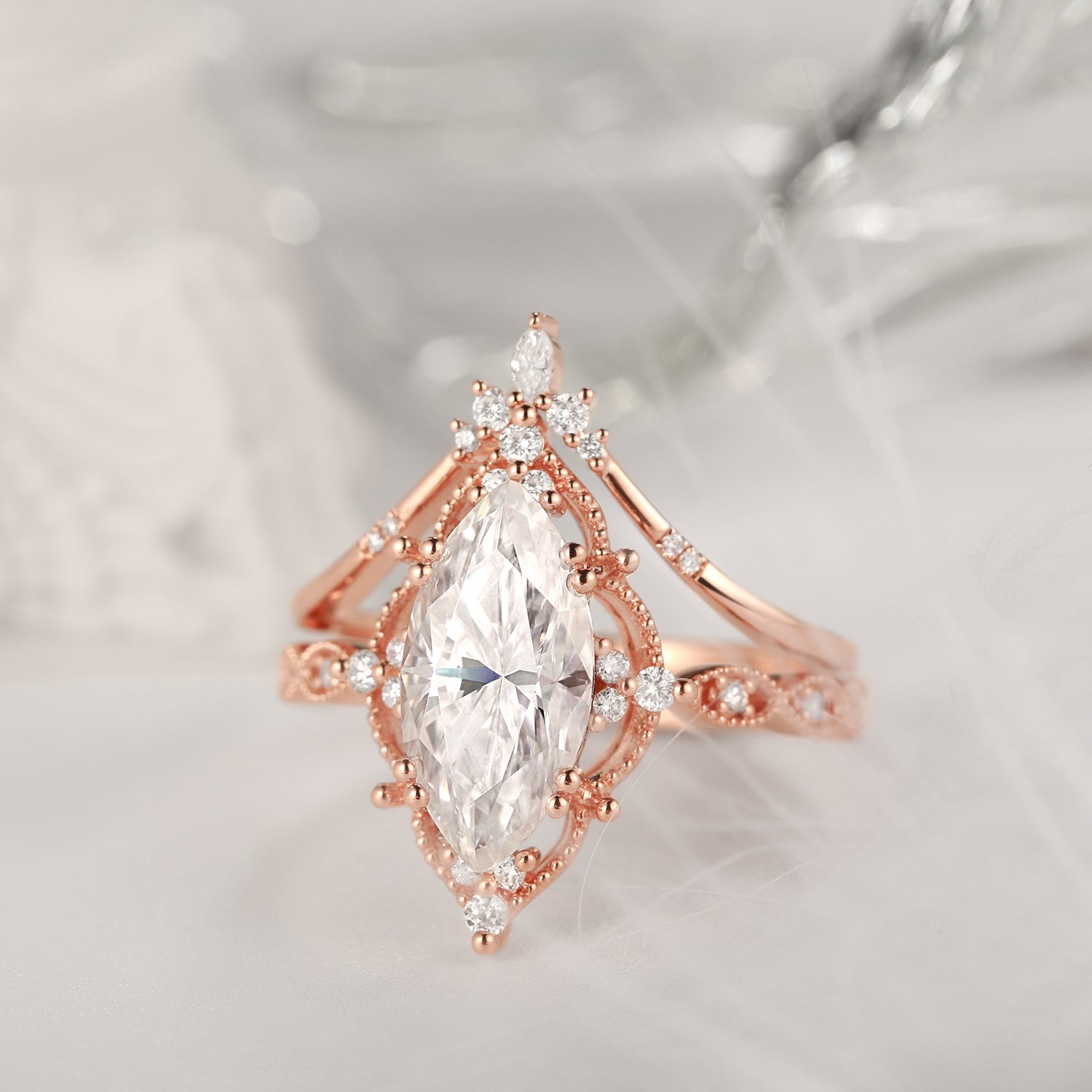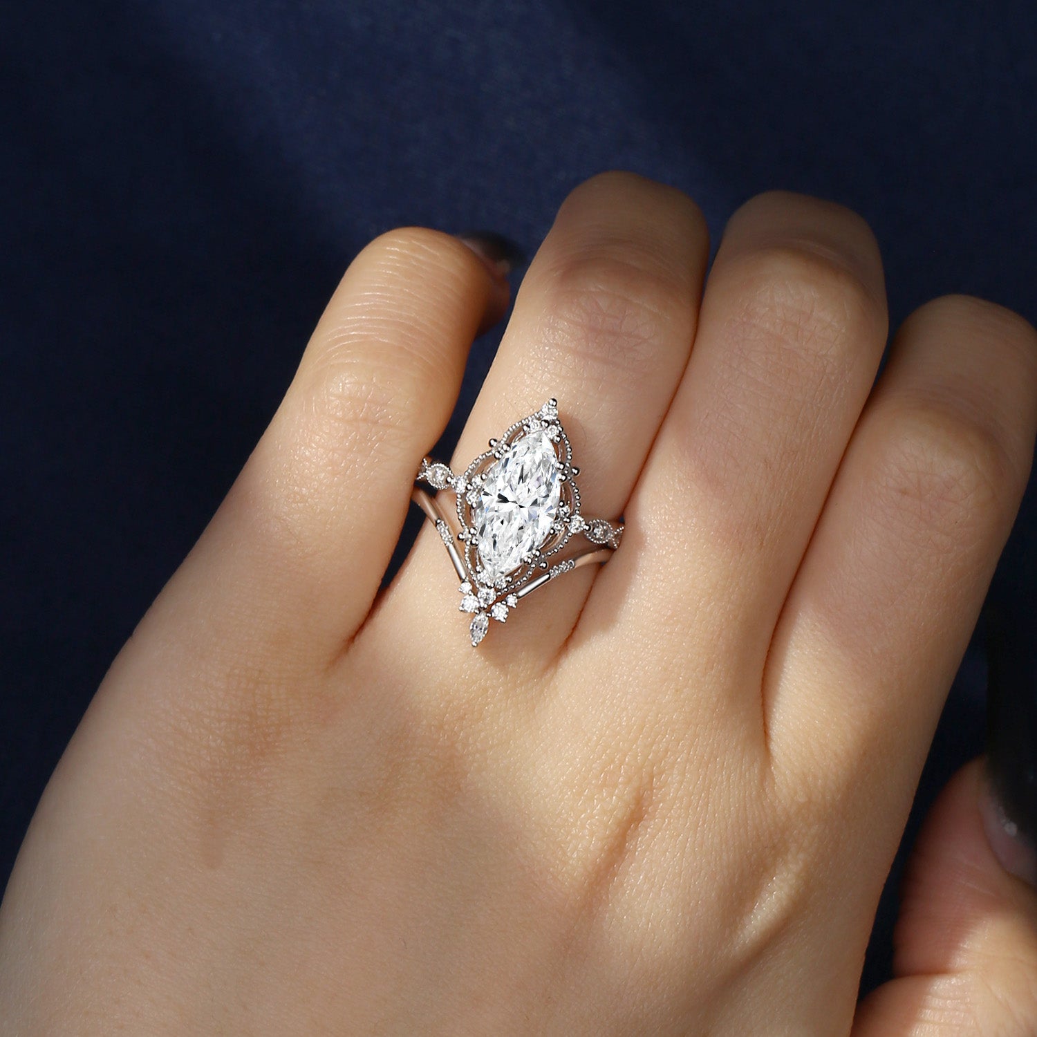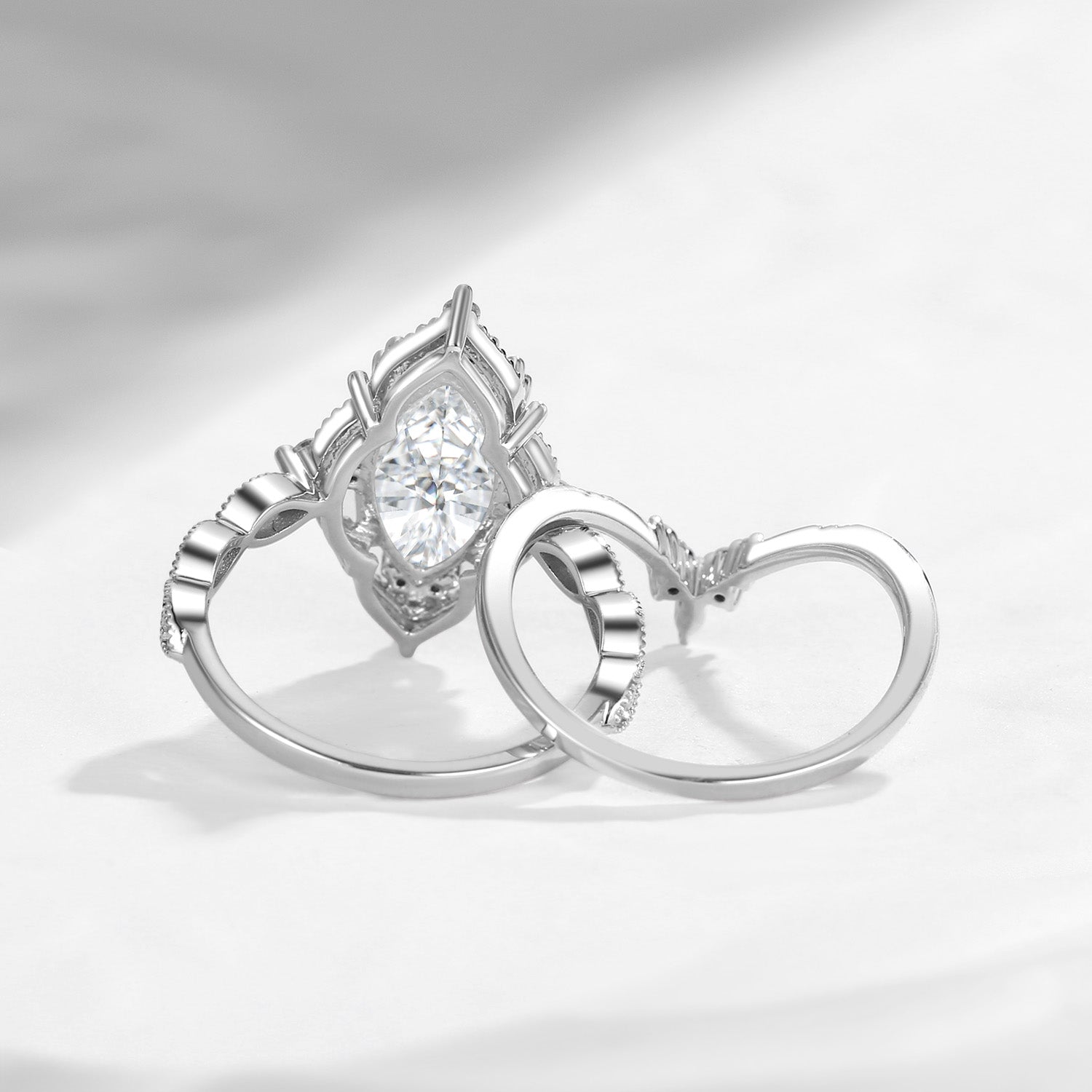 2.5ct 18K Unique Marquise Moissanite Engagement Ring Set 2pcs