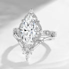 Moissanite Ring Unique Marquise Engagement Ring White Gold Wedding Ring Vintage Style