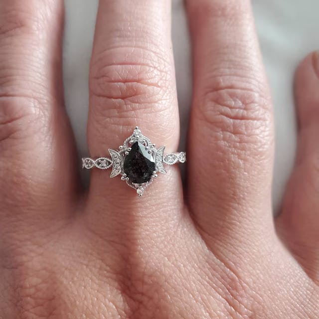 Crescent Moon | Antique Pear Cut Black Rutilated Quartz Engagement Ring