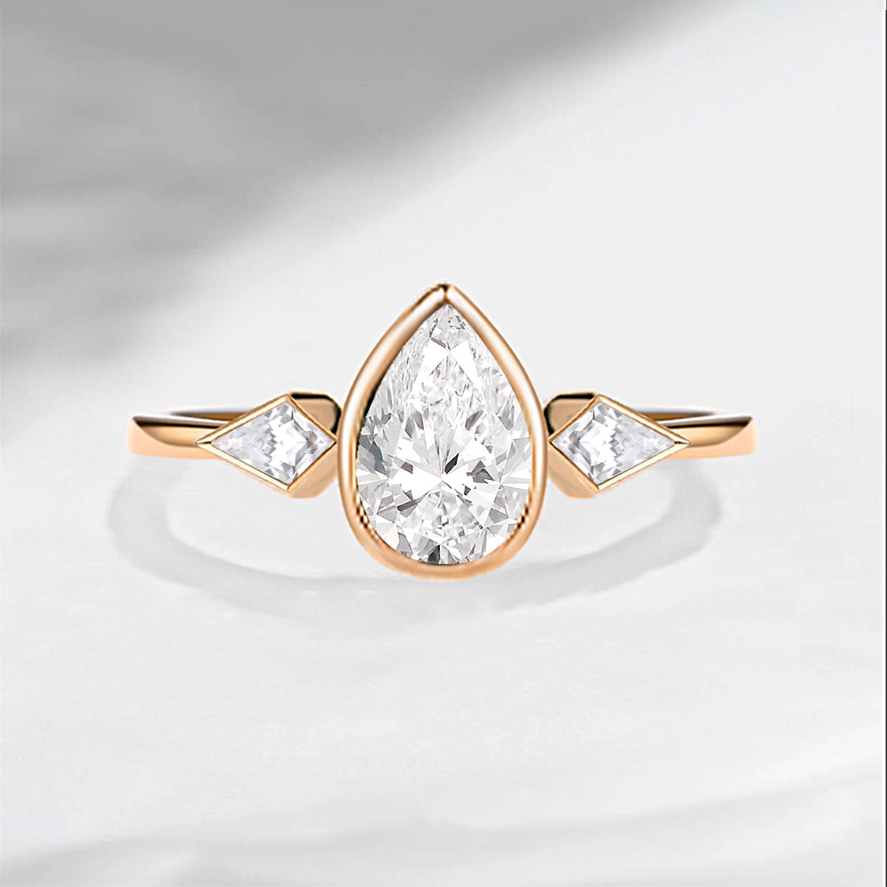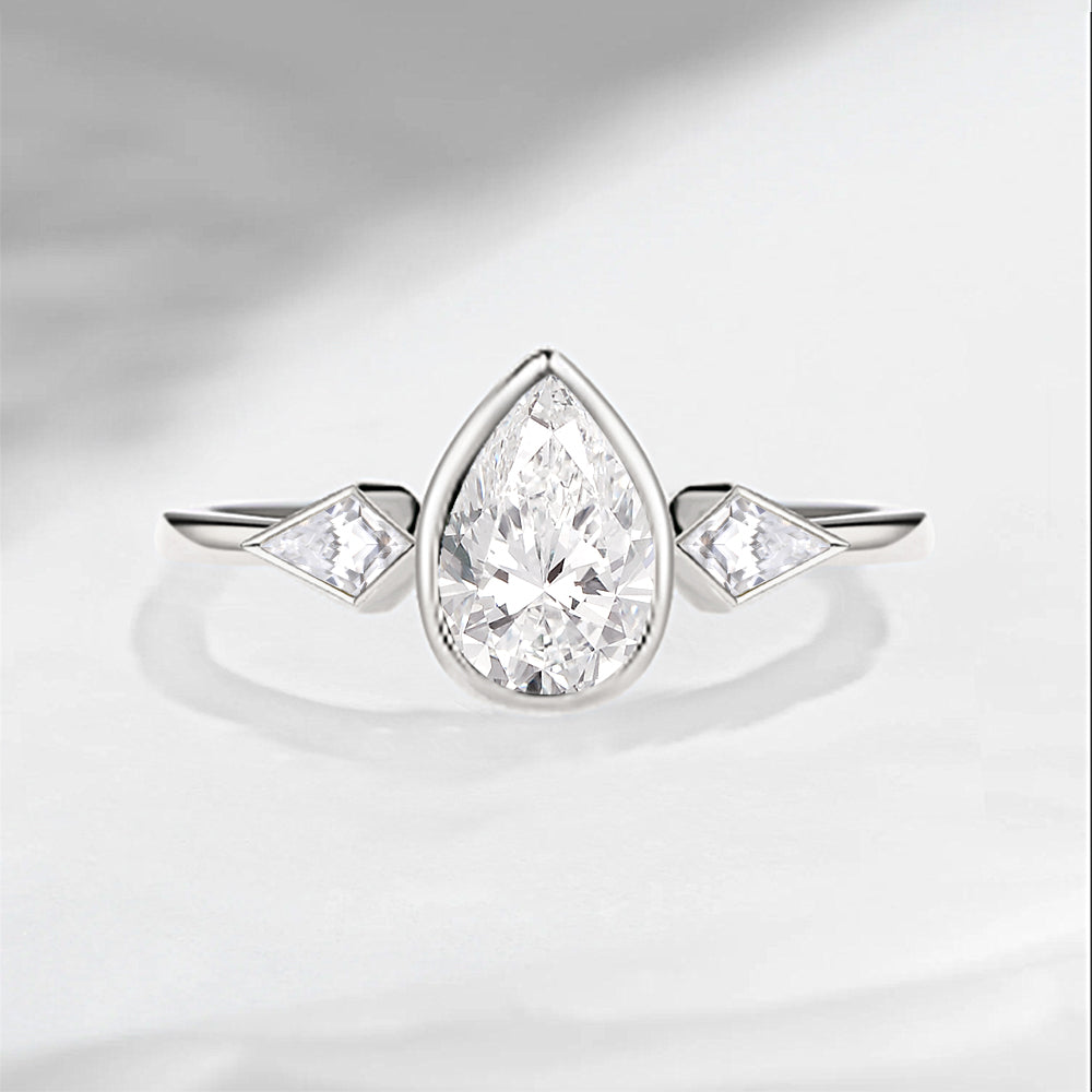 Solitaire Pear Shaped Lab Diamond Engagement Ring - Kite Wing