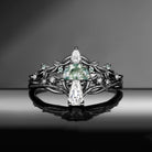 Bark Textured Half Moon Moss Agate & Coffin Moissanite 'Tree of Life' Leafy Mushroom Engagement Ring Set 2pcs Garden of Eden