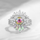 Mystic Moissanite Engagement Ring Set 3pcs Stacking Bridal Set Marquise Opal Cluster Engagement Ring Wedding Band Marquise Moissanite