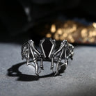 Black Moissanite Coffin Cut Vintage Inspired Black Gold Engagement Ring - Bat Ring