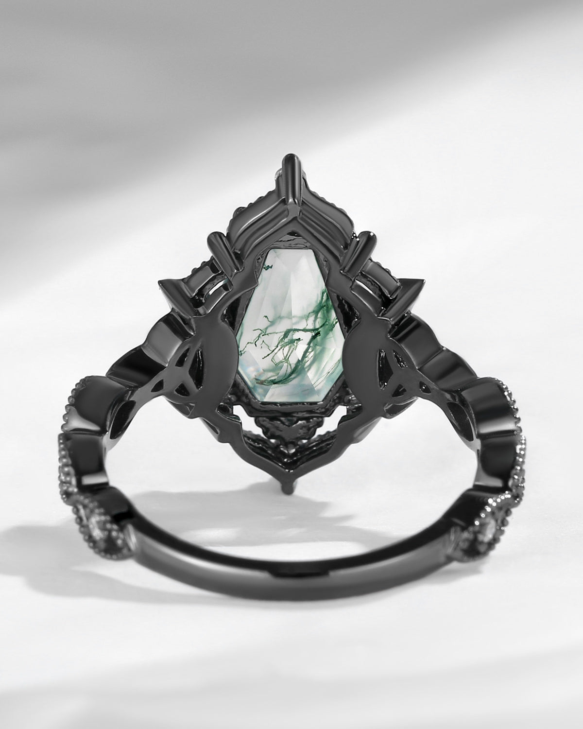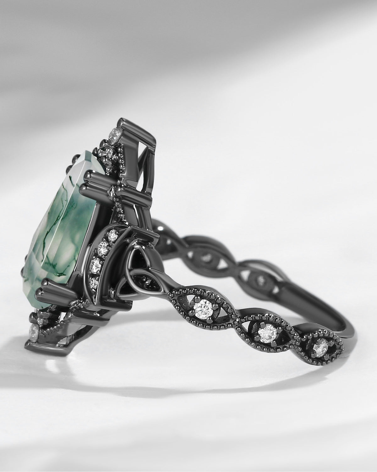 Celtic Moon | Oval Cut Lab Emerald Infinity Celtic Moon Engagement Ring Set 2pcs Vintage Inspired Celtic Moon Ring