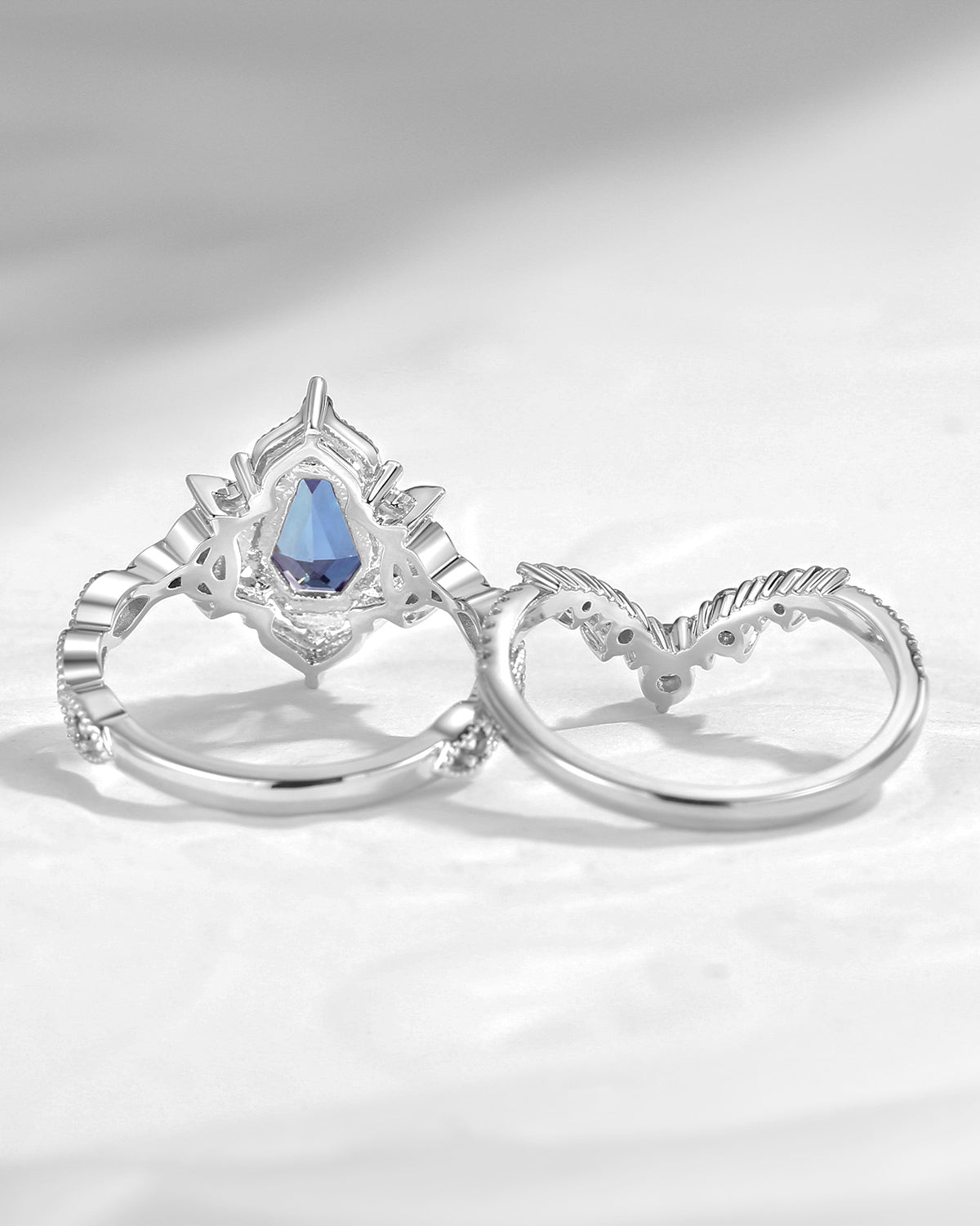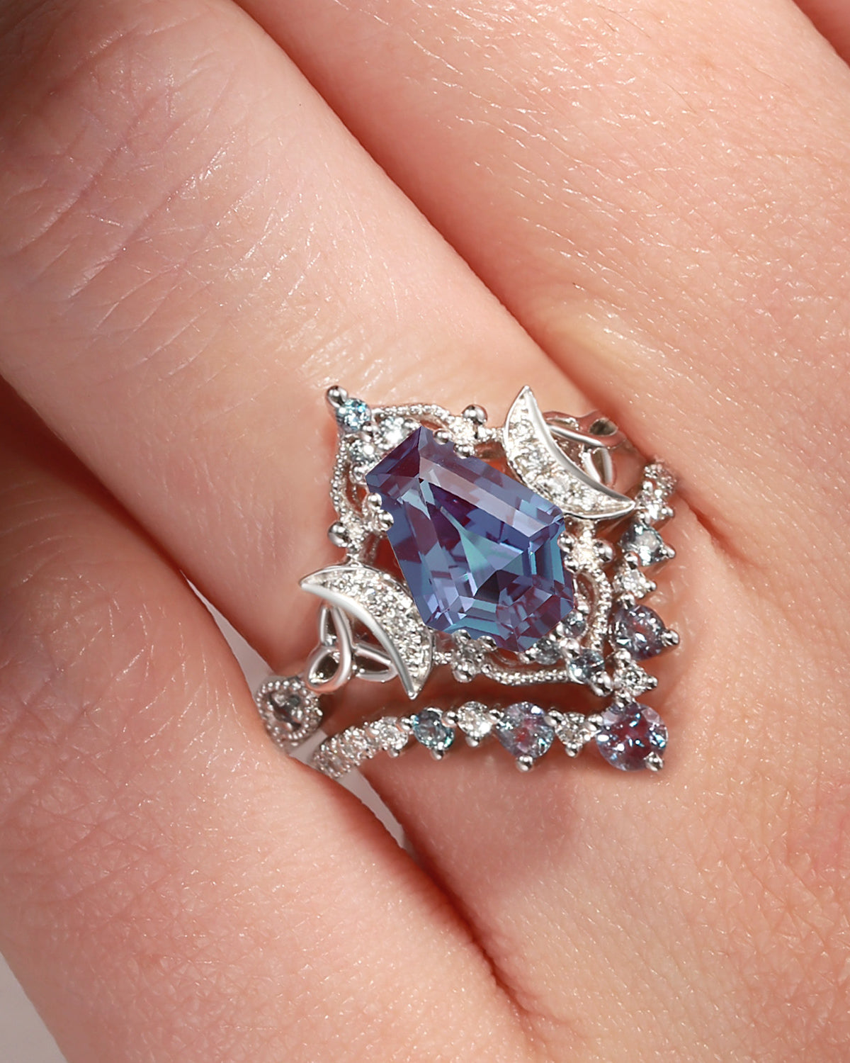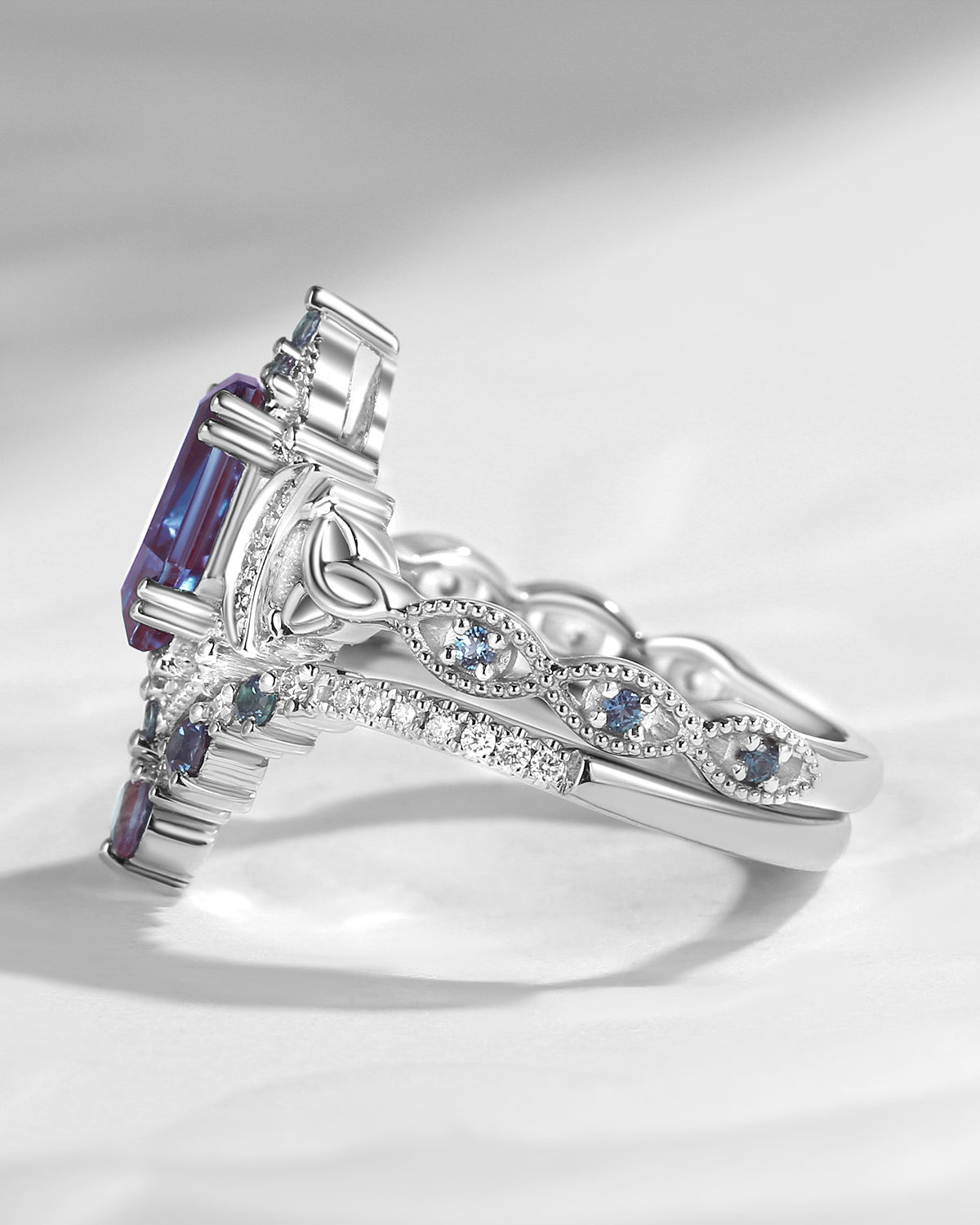 Celtic Moon | Pear Cut Lab Alexandrite Celtic Engagement Ring Set 2pcs