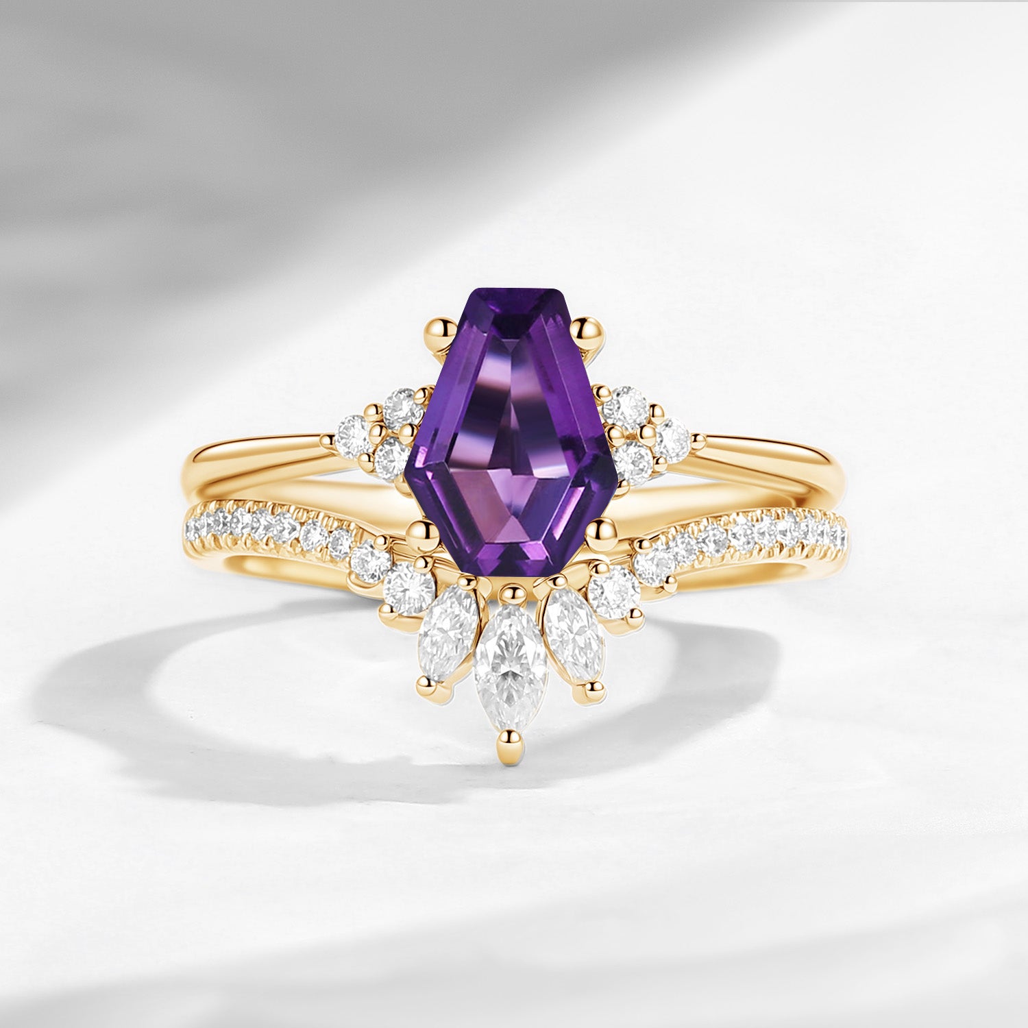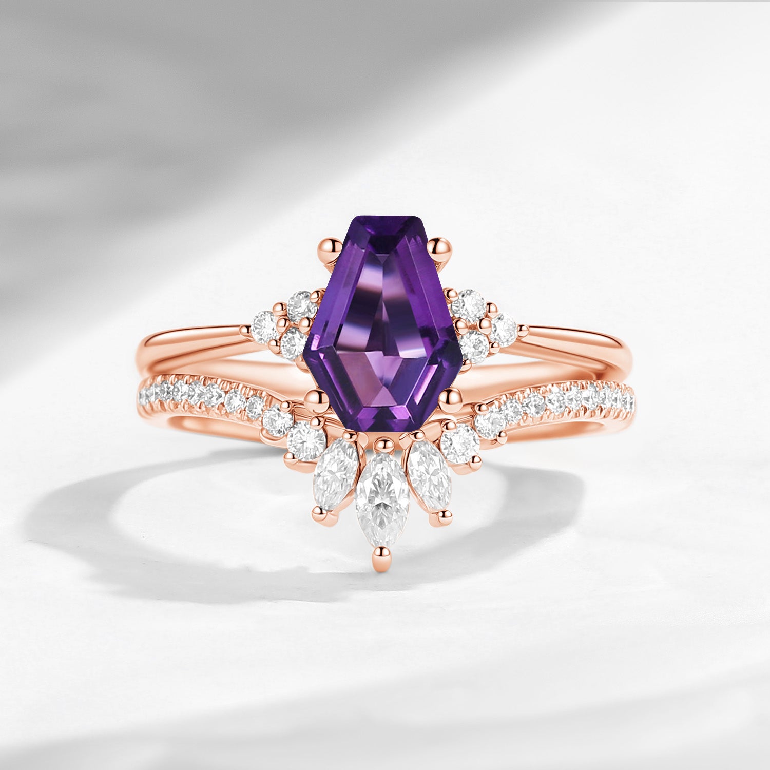 Classic Coffin Cut Amethyst Engagement Set 2pcs - White Dress