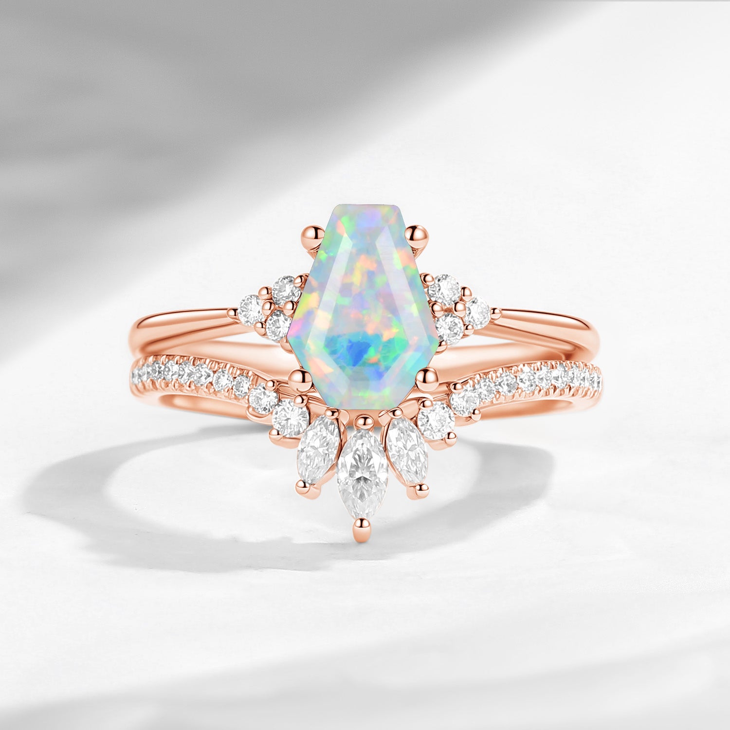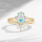 Classic Coffin Cut Lab Opal Engagement Set 2pcs - White Dress