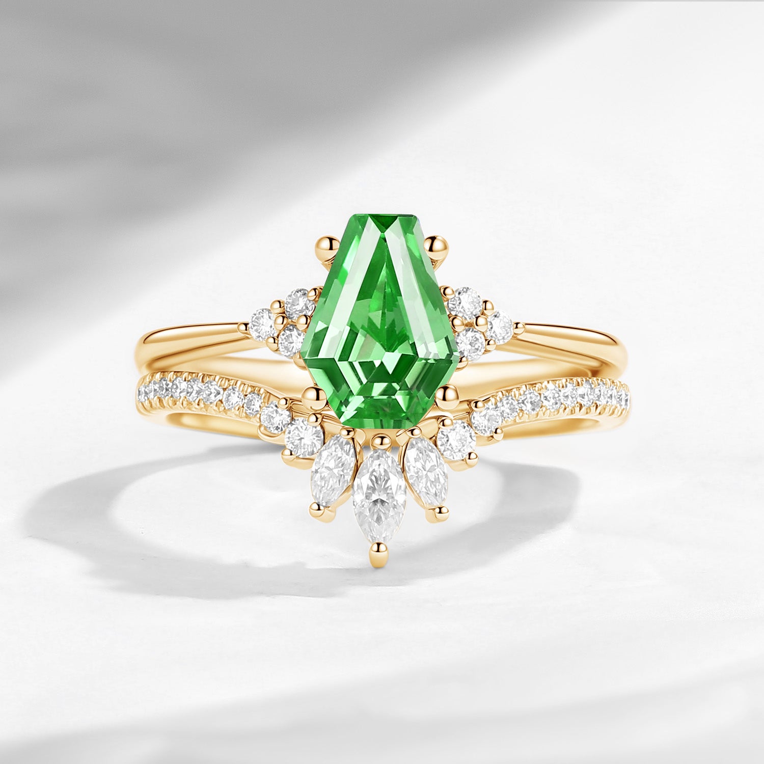Classic Coffin Cut Lab Tsavorite Engagement Set 2pcs - White Dress