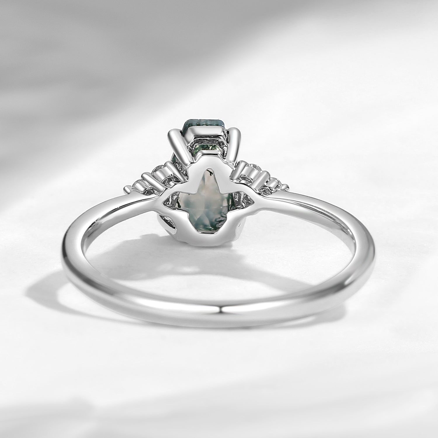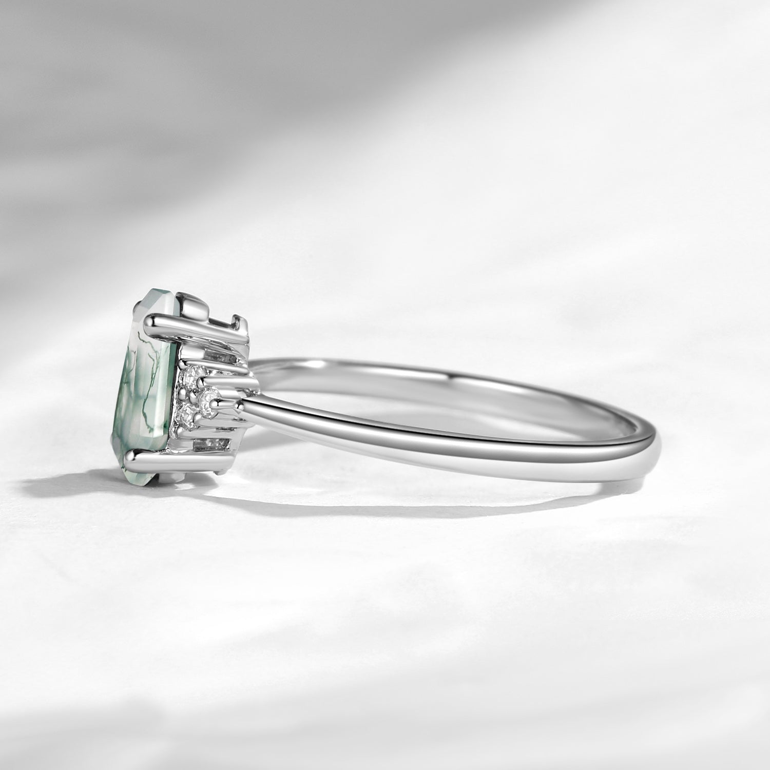 Coffin Shaped Moss Agate Engagement Ring Engagement Ring Unique Cluster Ring Solitaire Ring