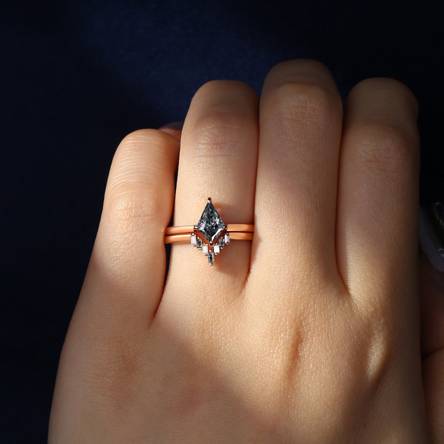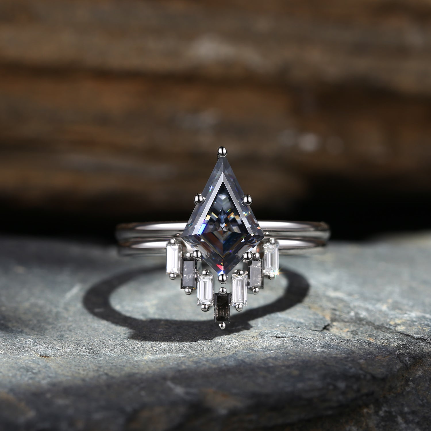 ⟢ Center Stone: Kite Cut Grey Moissanite, 6*9mm