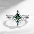 Kite Cut Natural Teal Sapphire Engagement Ring Set Unique Kite Ring Classic Bridal Ring Set Promise Ring Women