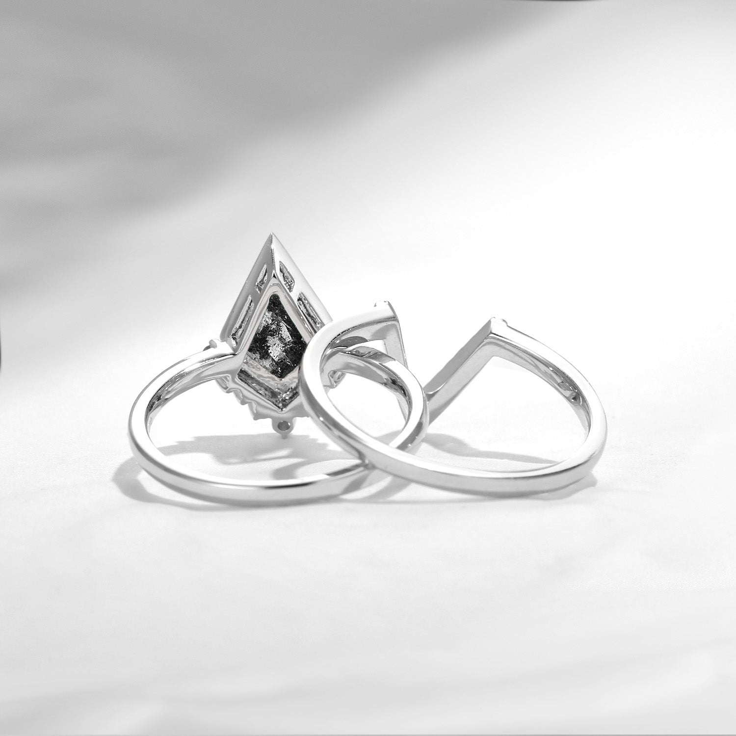 Classic Kite Cut Salt and Pepper Diamond Ring Set 2pcs - Statement