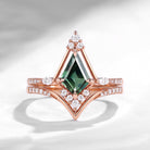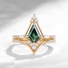 Natural Kite Cut Teal Sapphire Ring 2pcs Unique Kite Ring Cluster Bridal Ring Set