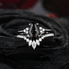 White Gold Engagement Ring Coffin Black Rutilated Quartz Ring Set 2pcs Crystal Ring Till death do us apart Ring Gift