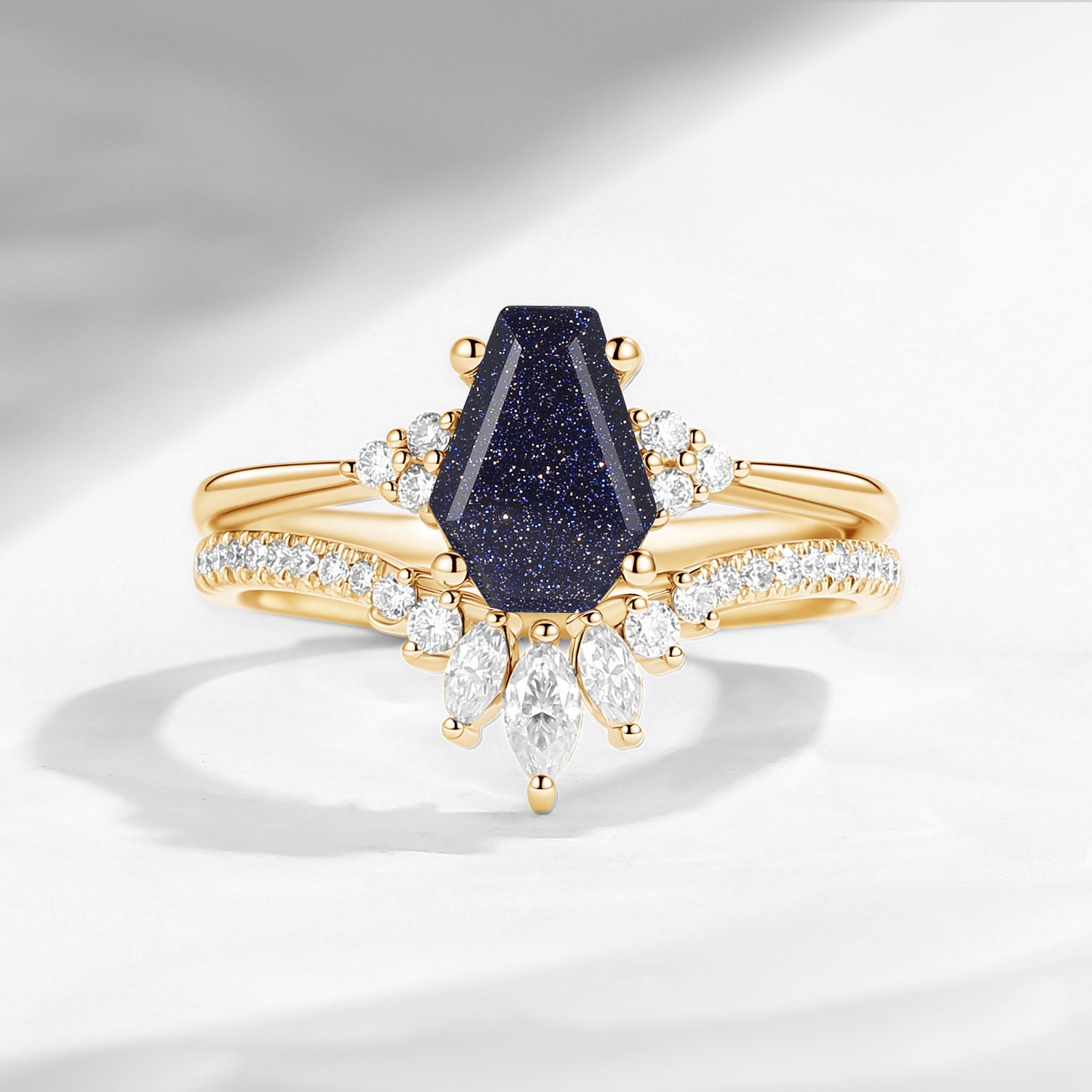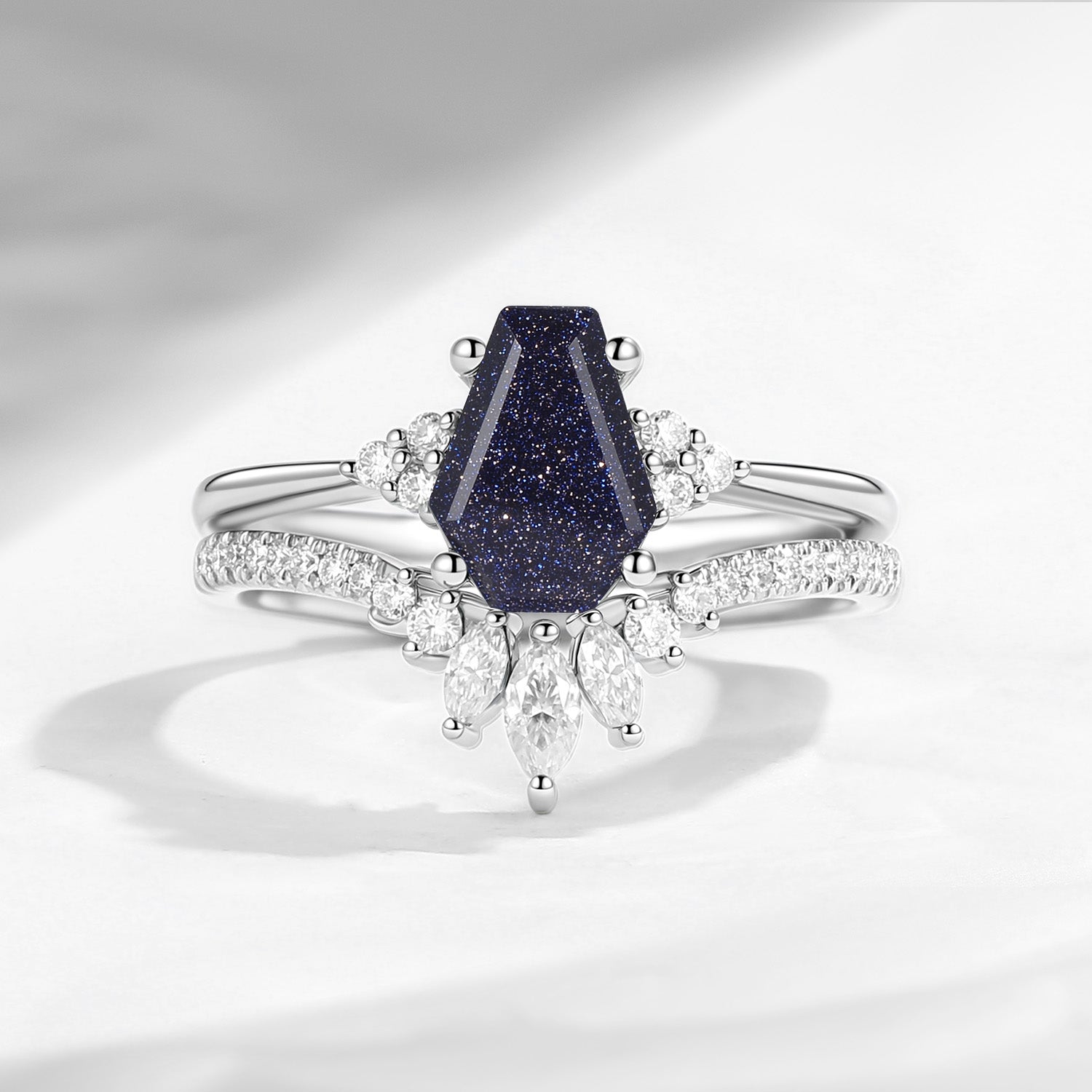 ⟢ Center Stone: Blue Sandstone in coffin shape, 1.5ct as shown