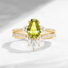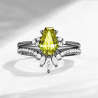 Coffin Cut Lab Yellow Sapphire Cluster Engagement Set 2pcs - White Dress