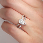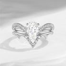 Coffin Cut Moissanite Spooky Engagement Ring Set 2pcs - Dainty Bat Ring