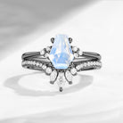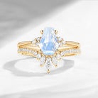 Coffin Cut Moonstone Cluster Engagement Set 2pcs - White Dress