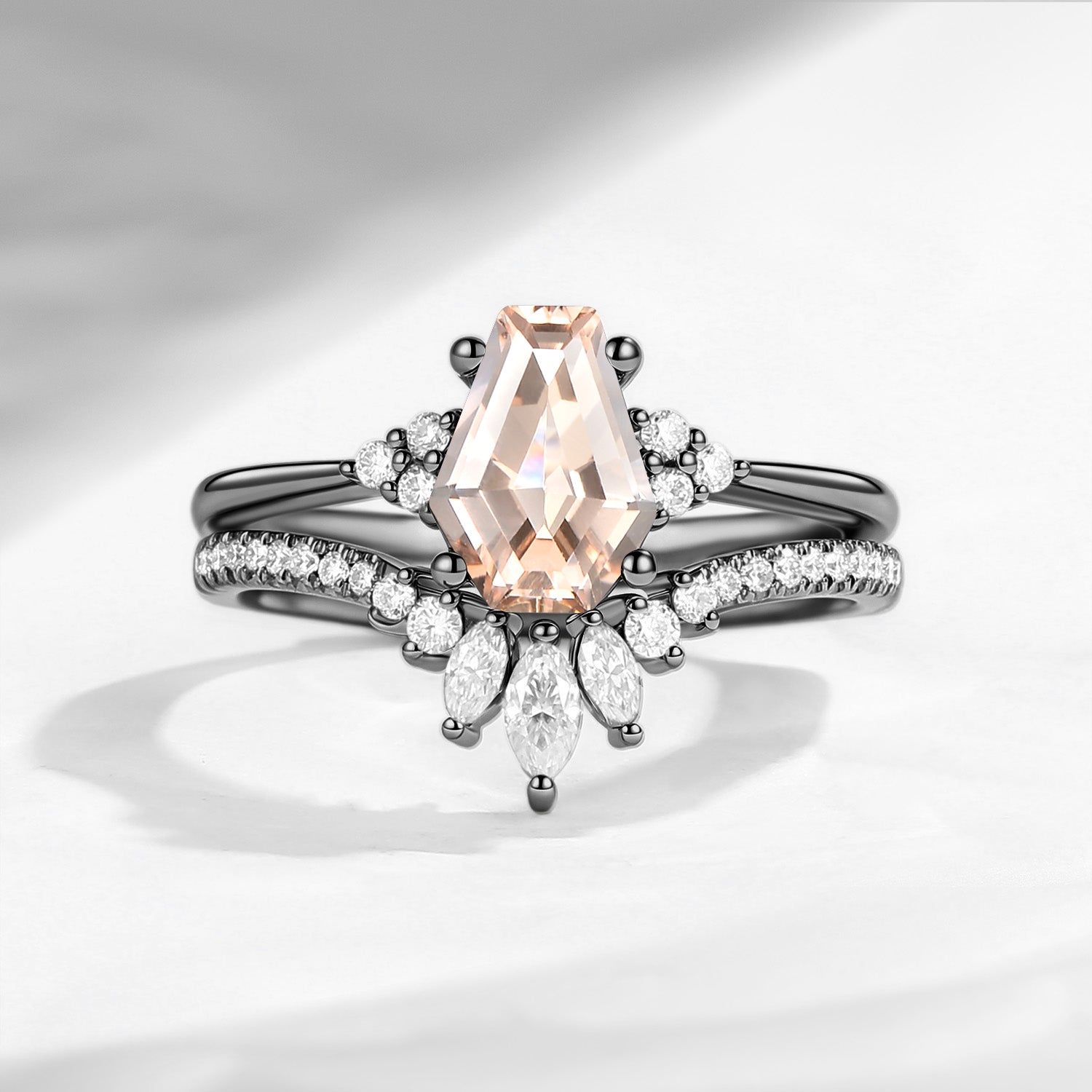 ⟢ Center Stone: Morganite in coffin shape, 1.5ct as shown