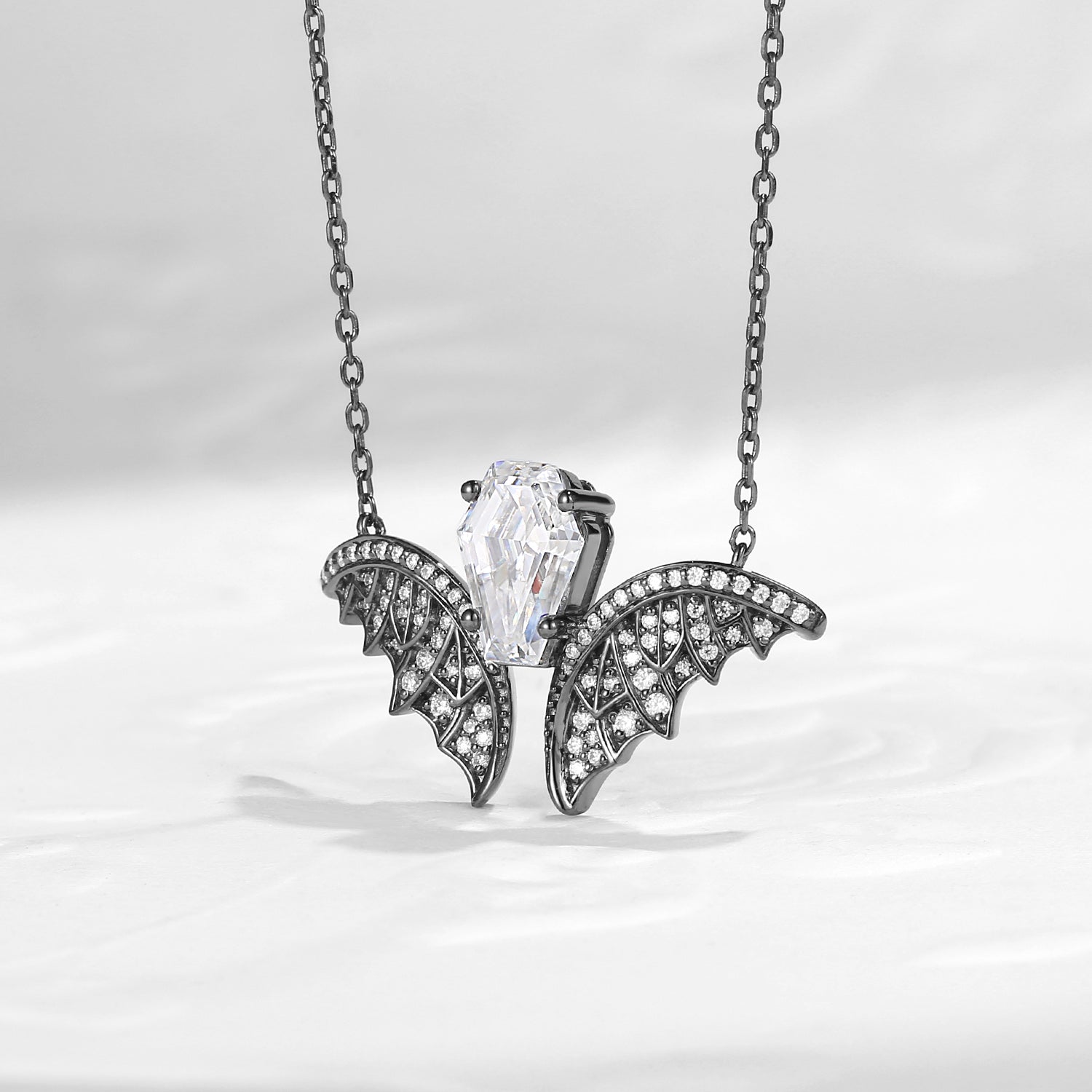 Coffin Moissanite Bat Inspired Black Gold Necklace - Fly To Love