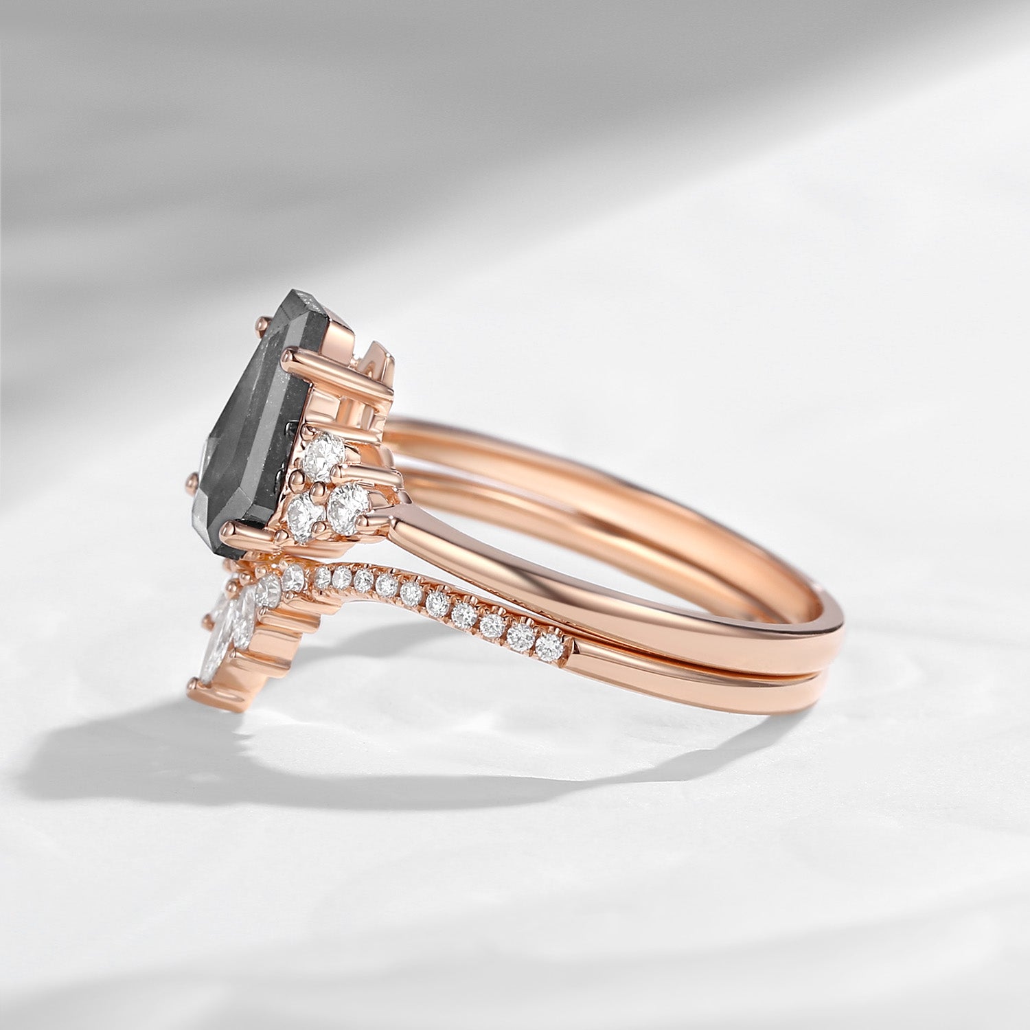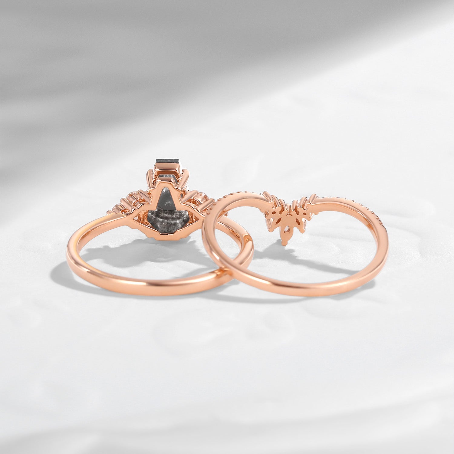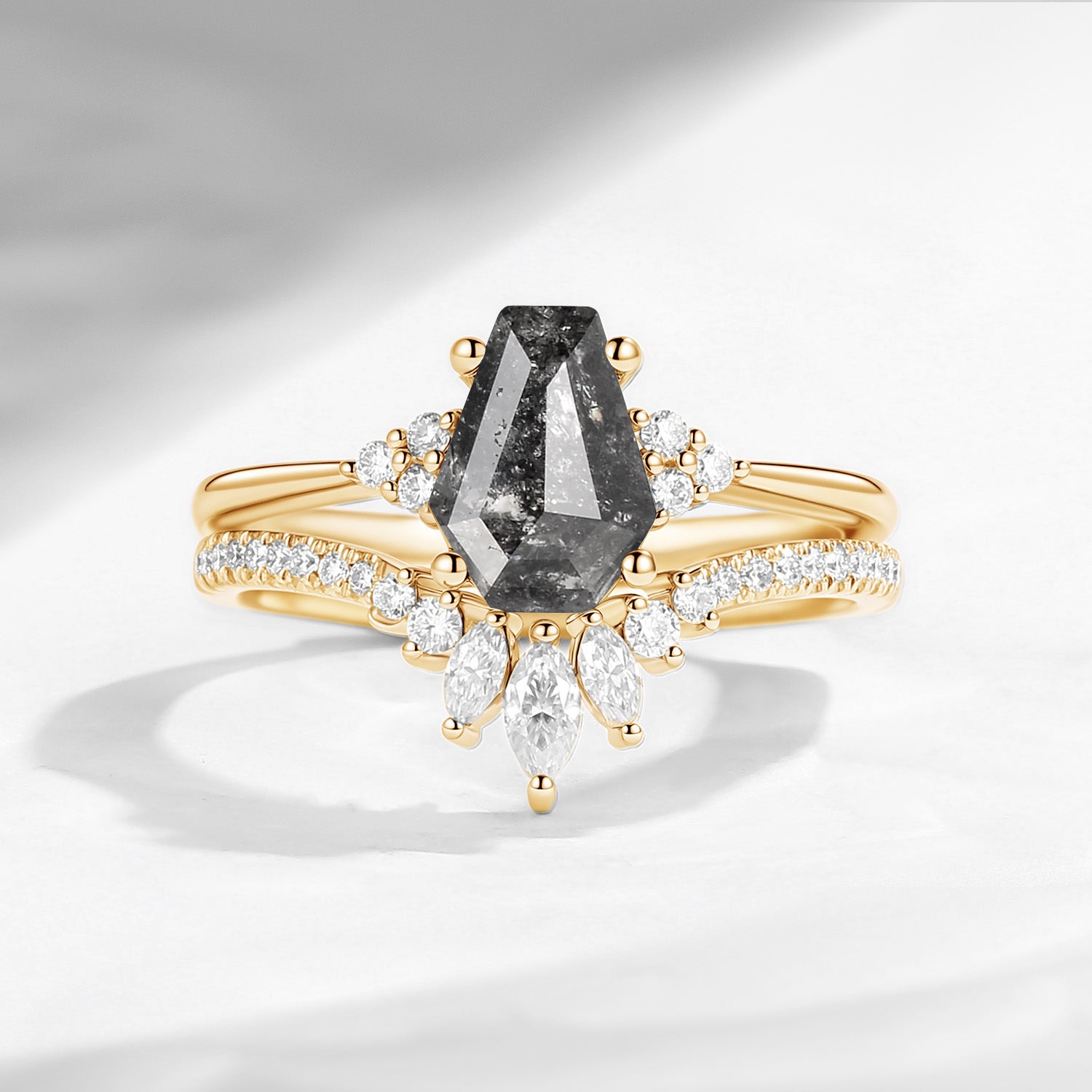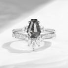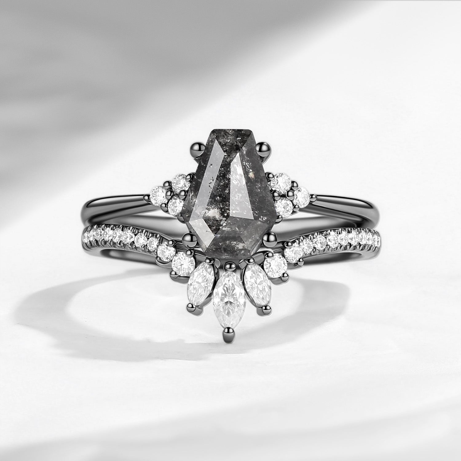 Coffin Cut Salt And Pepper Diamond Engagement Ring Set 2pcs - Goth Girl