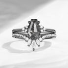 White Gold Engagement Ring Coffin Salt And Pepper Diamond Ring Set 2pcs