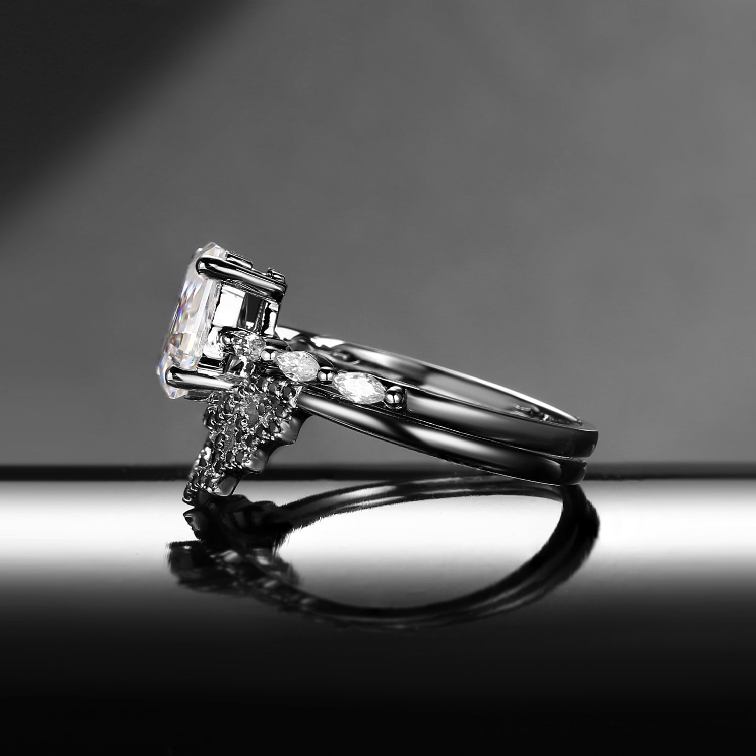 ⟢ Side Stone 2: Black Moissanite/Diamond, about 0.25ct