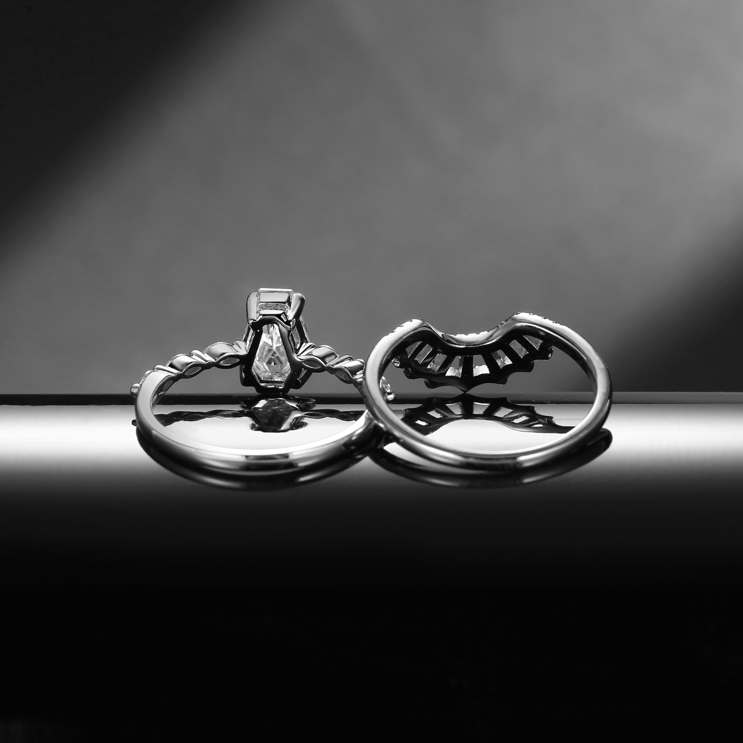 ⟢ Center Stone: Faceted Coffin Cut Moissanite, 6*8mm