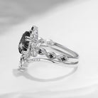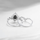 Crescent Moon | 18K Antique Pear Cut Black Rutilated Quartz Engagement Ring Set 2pcs - Dark Moon