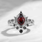 Crescent Moon | 18K Vintage Inspired Pear Shaped Garnet Ring Set 2pcs - Eclipse