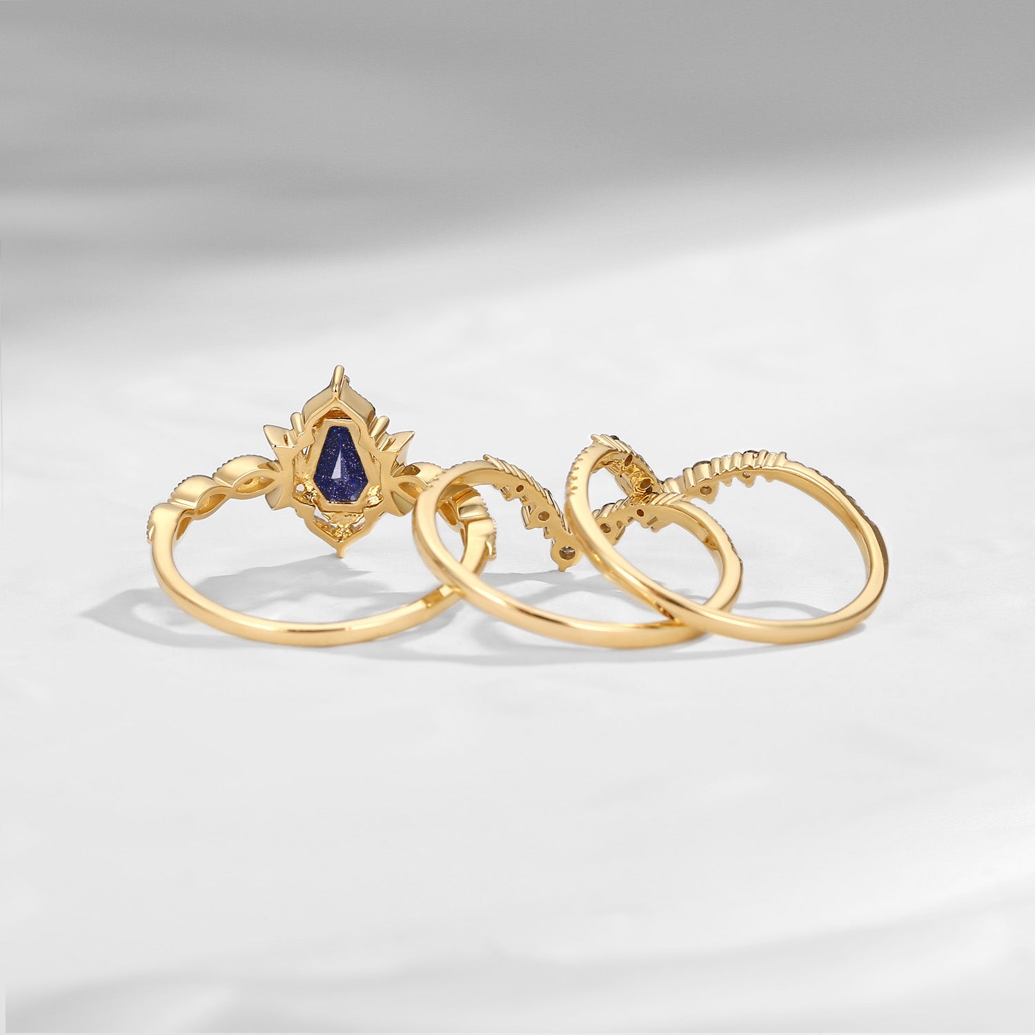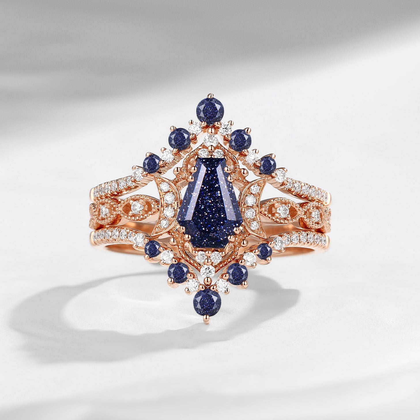 Coffin Blue Sandstone Crescent Engagement Ring 3pcs Moon Bridal Ring Vintage Engagement Ring Art Deco Vintage Till Death Do US Part