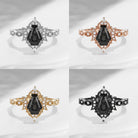 Crescent Moon | Coffin Cut Black Rutilated Quartz Ring Crystal Engagement Ring Unique Engagement Ring