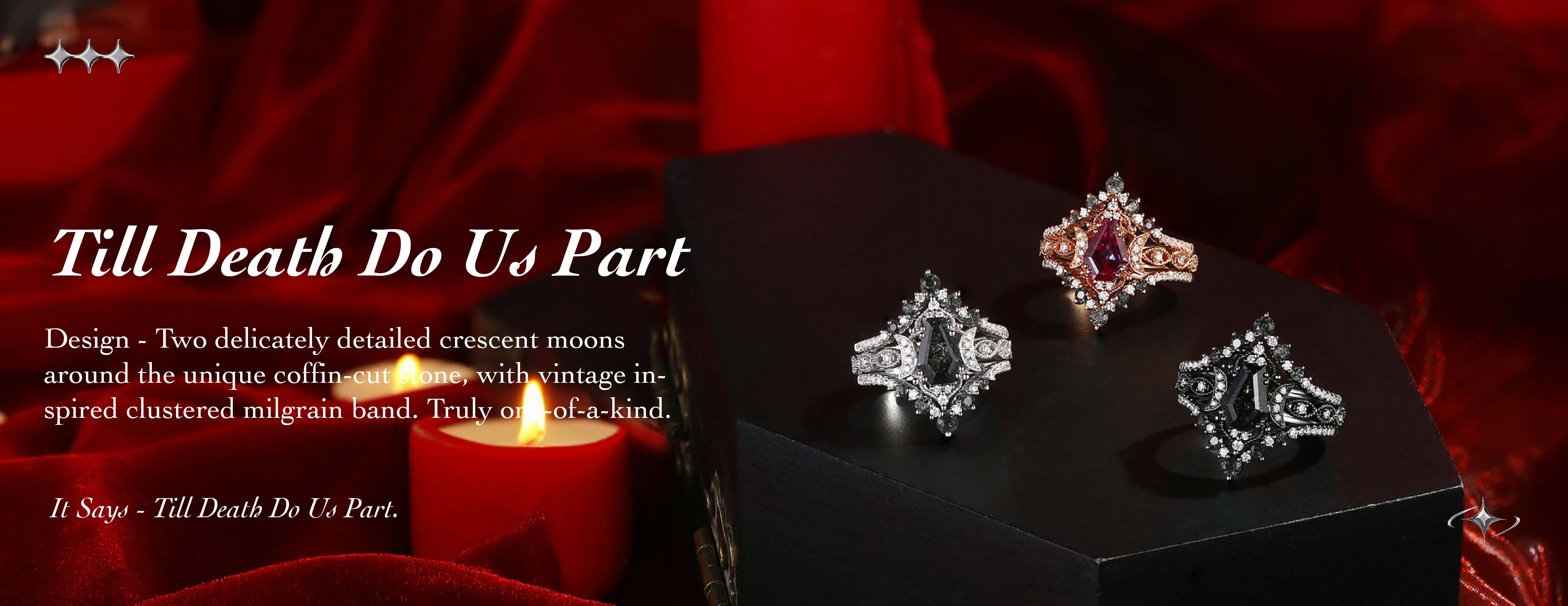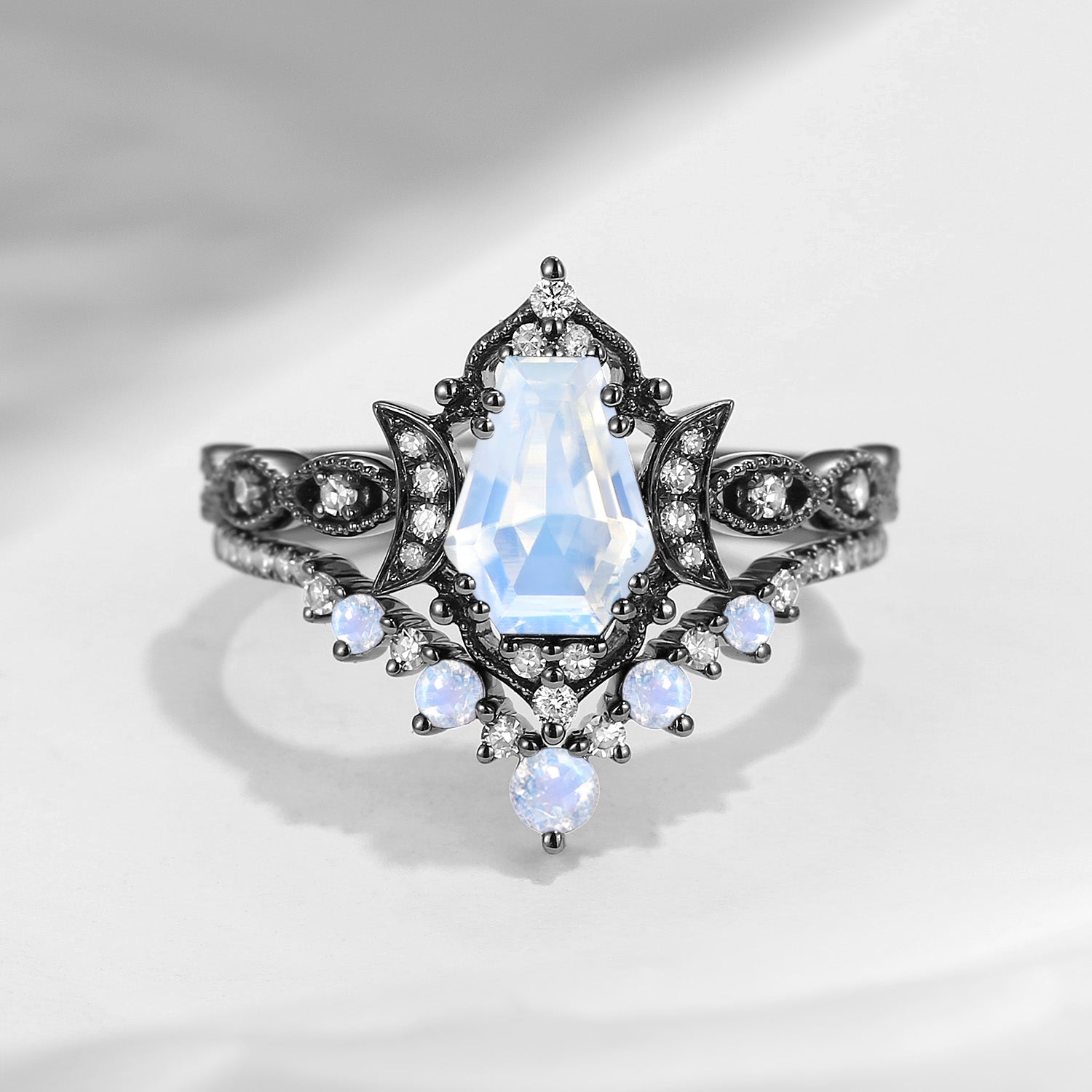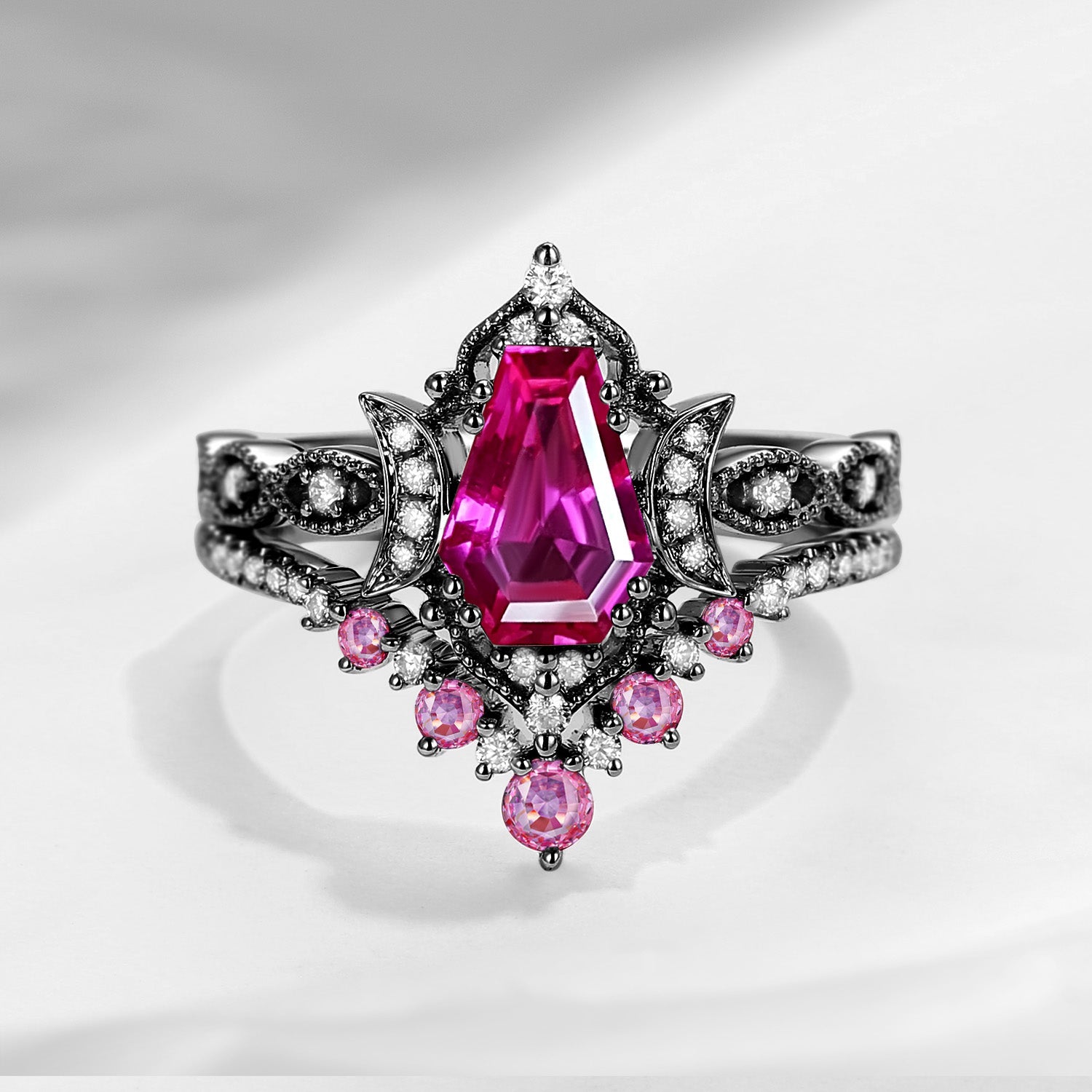 Crescent Moon | Coffin Cut Garnet 'Black Statement' Ring Set 2pcs