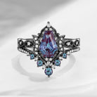 Crescent Moon | Coffin Cut Lab Alexandrite 'Till Death Do Us Apart' Ring Set 2pcs