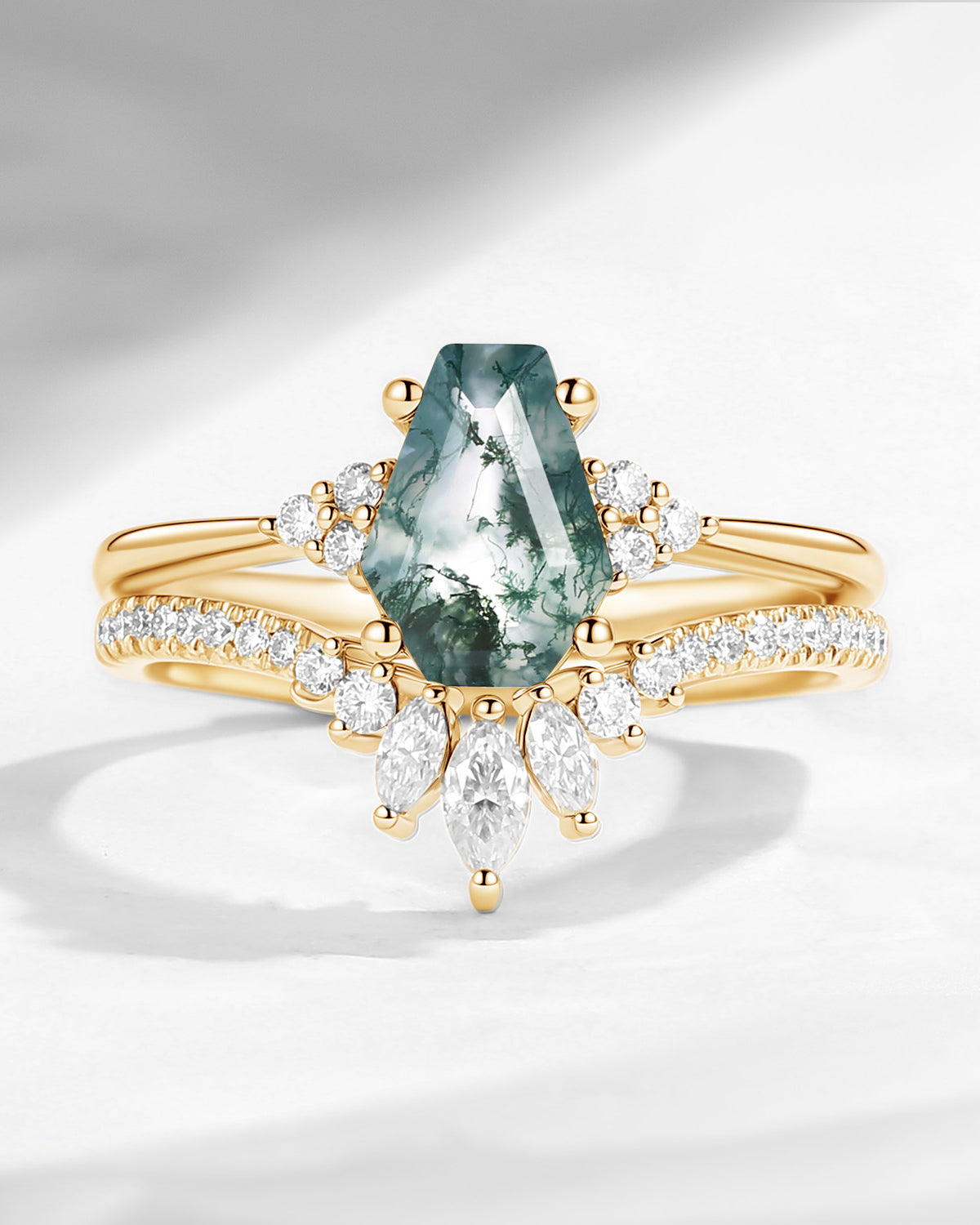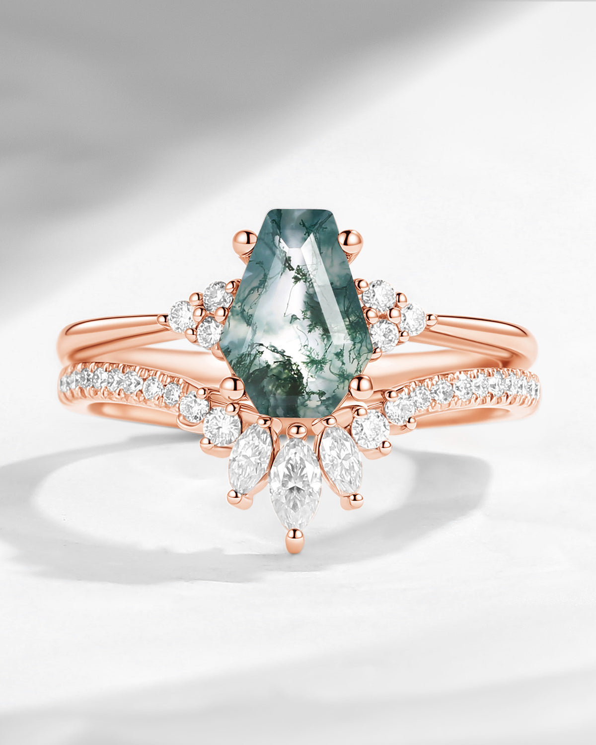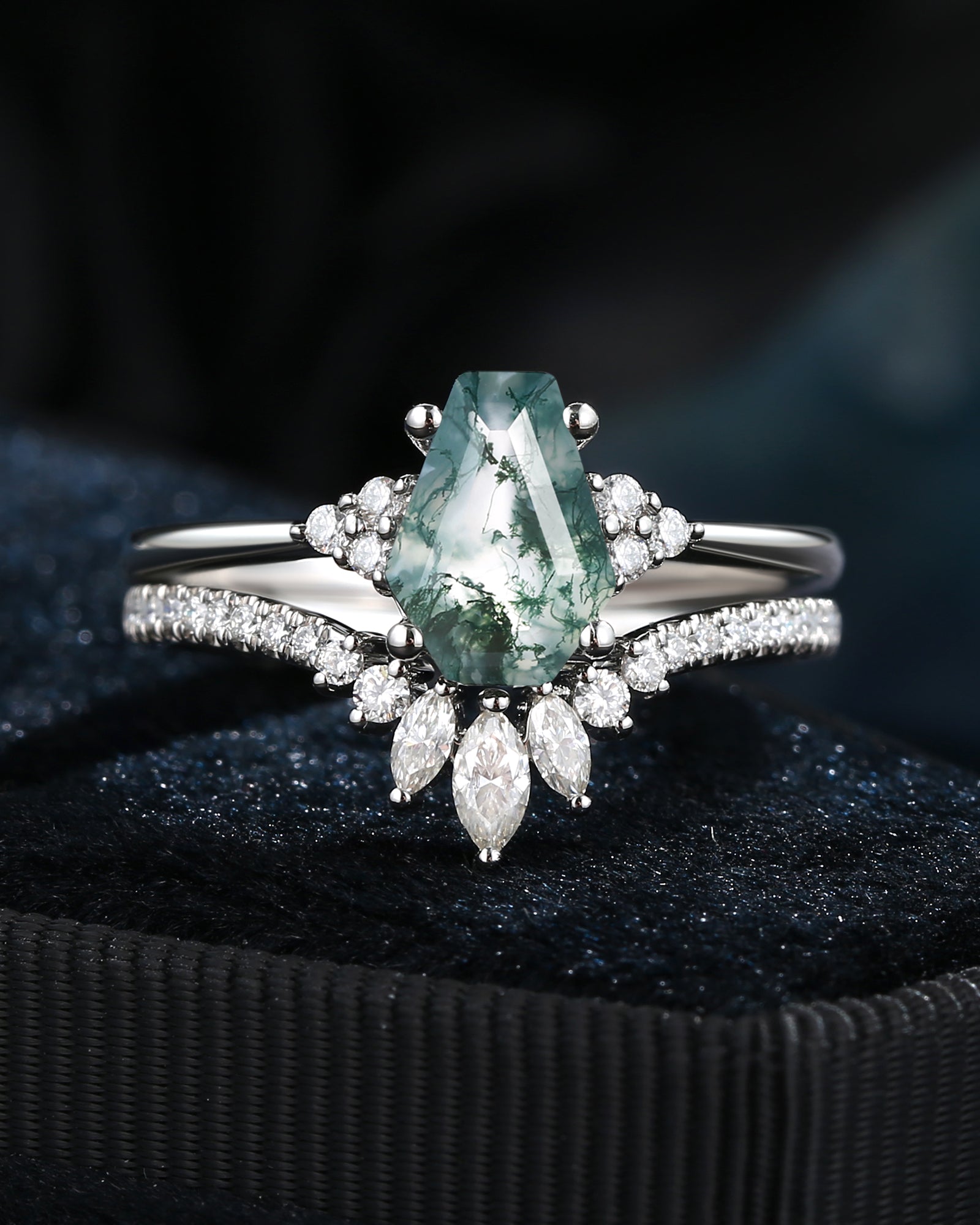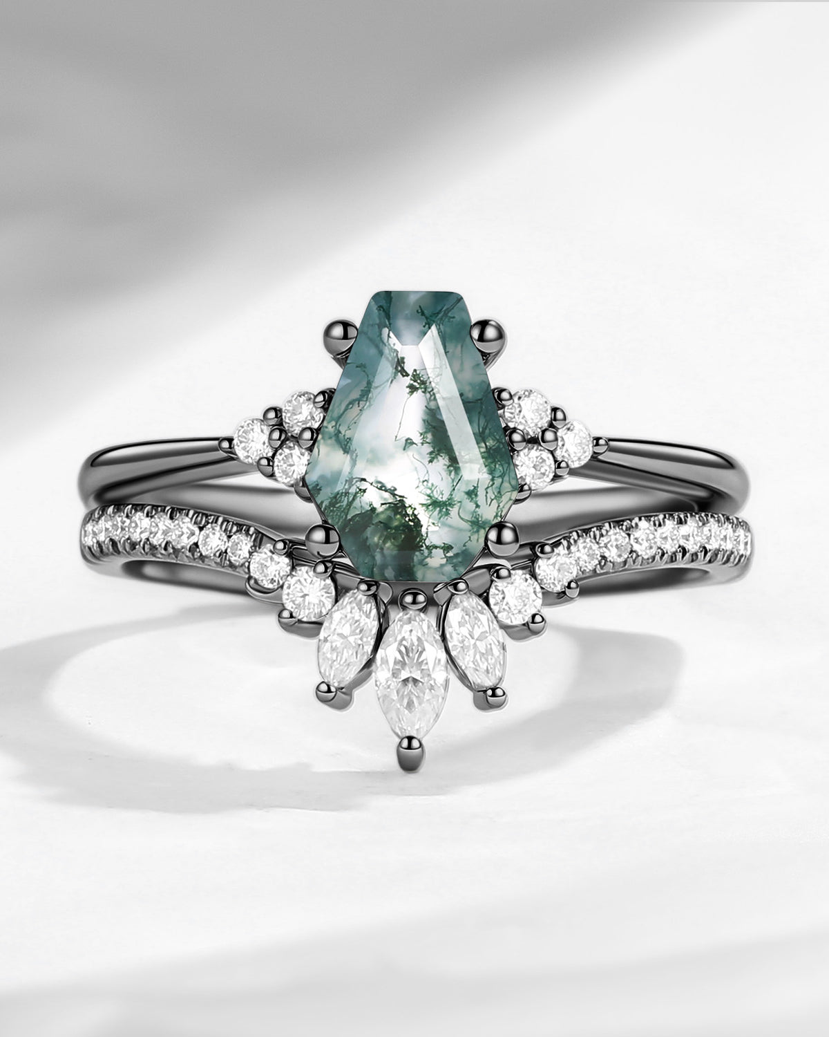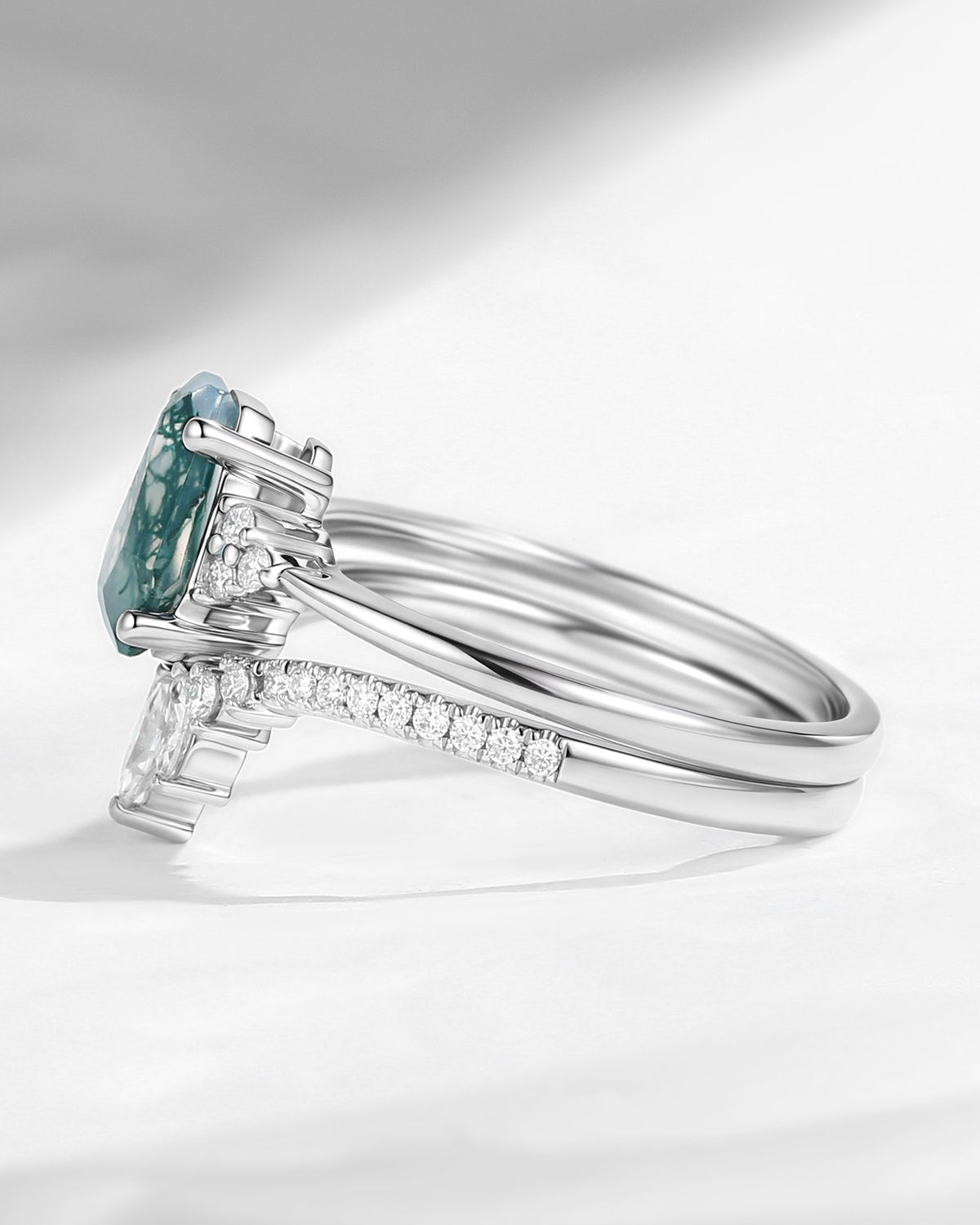 1.5ct Pear Shaped Moss Agate Engagement Ring Set 2pcs - Evelyn