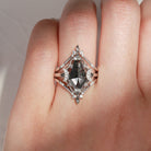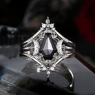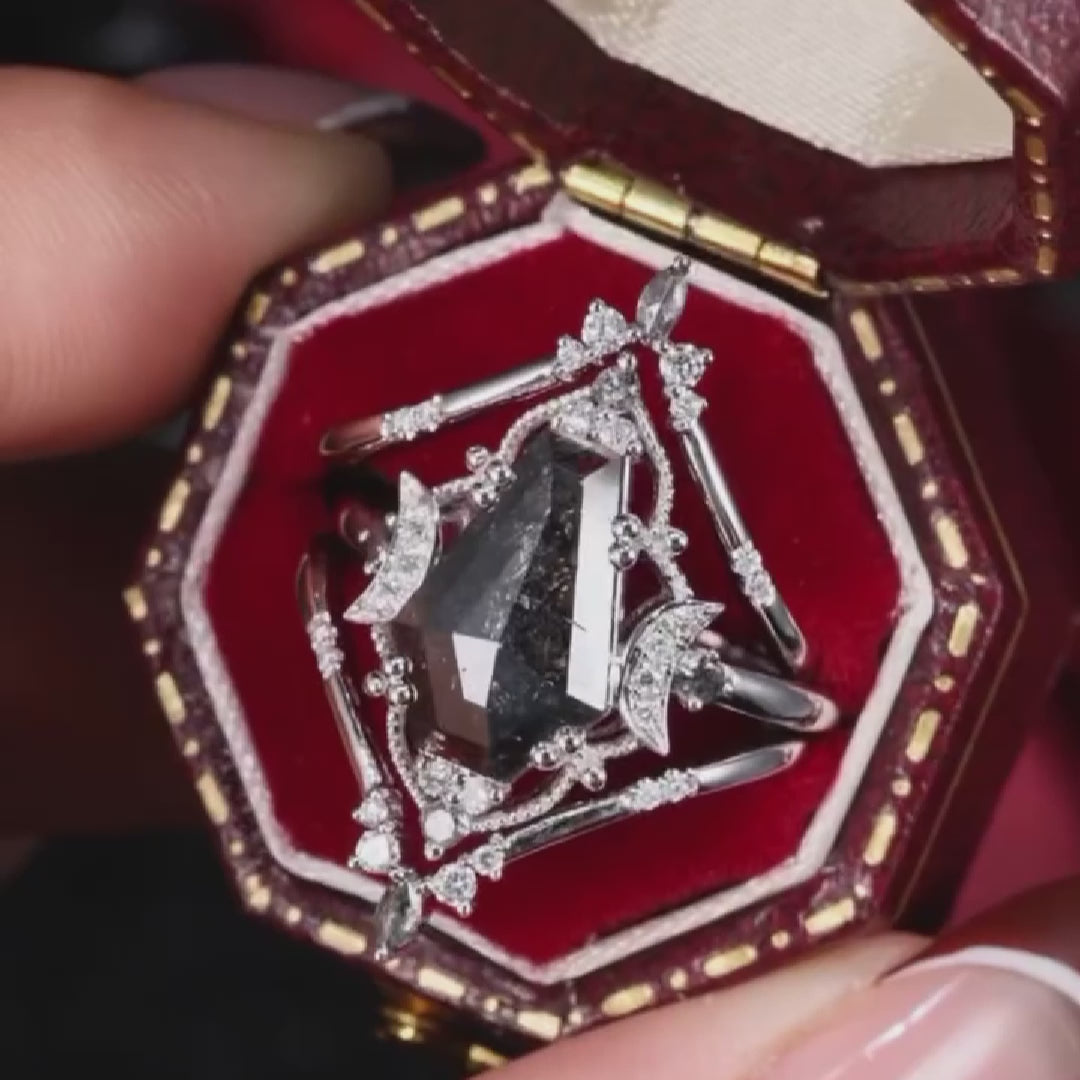 Crescent Moon | Coffin Cut Salt and Pepper Diamond Art-Deco Engagement Ring Set 3pcs