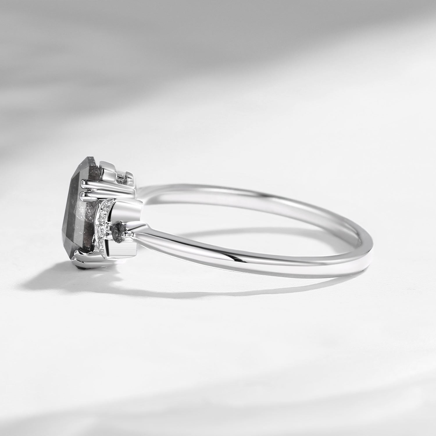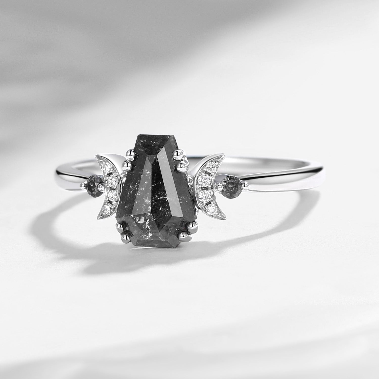 Crescent Moon | Coffin Salt and Pepper Diamond Classic Engagement Ring