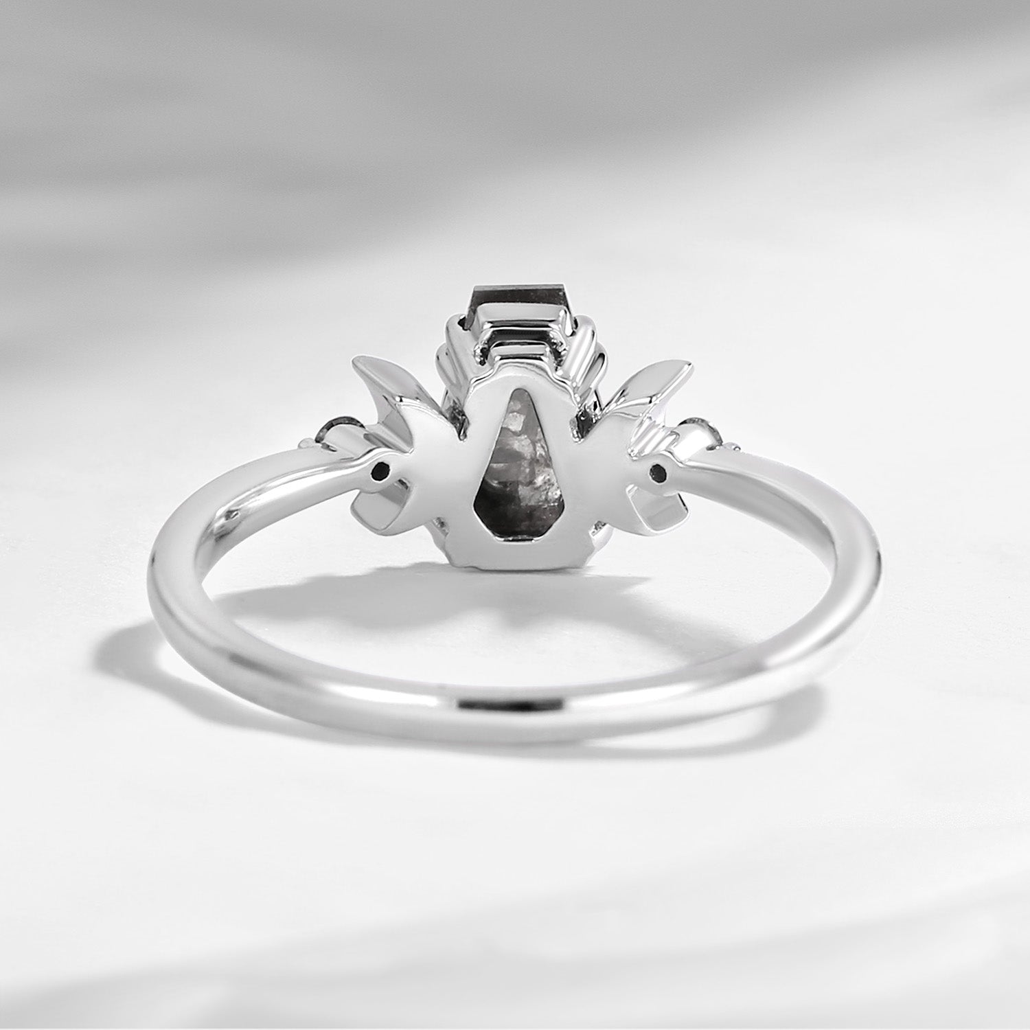 Crescent Moon | Coffin Cut Salt and Pepper Diamond Art-Deco Engagement Ring Set 3pcs