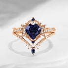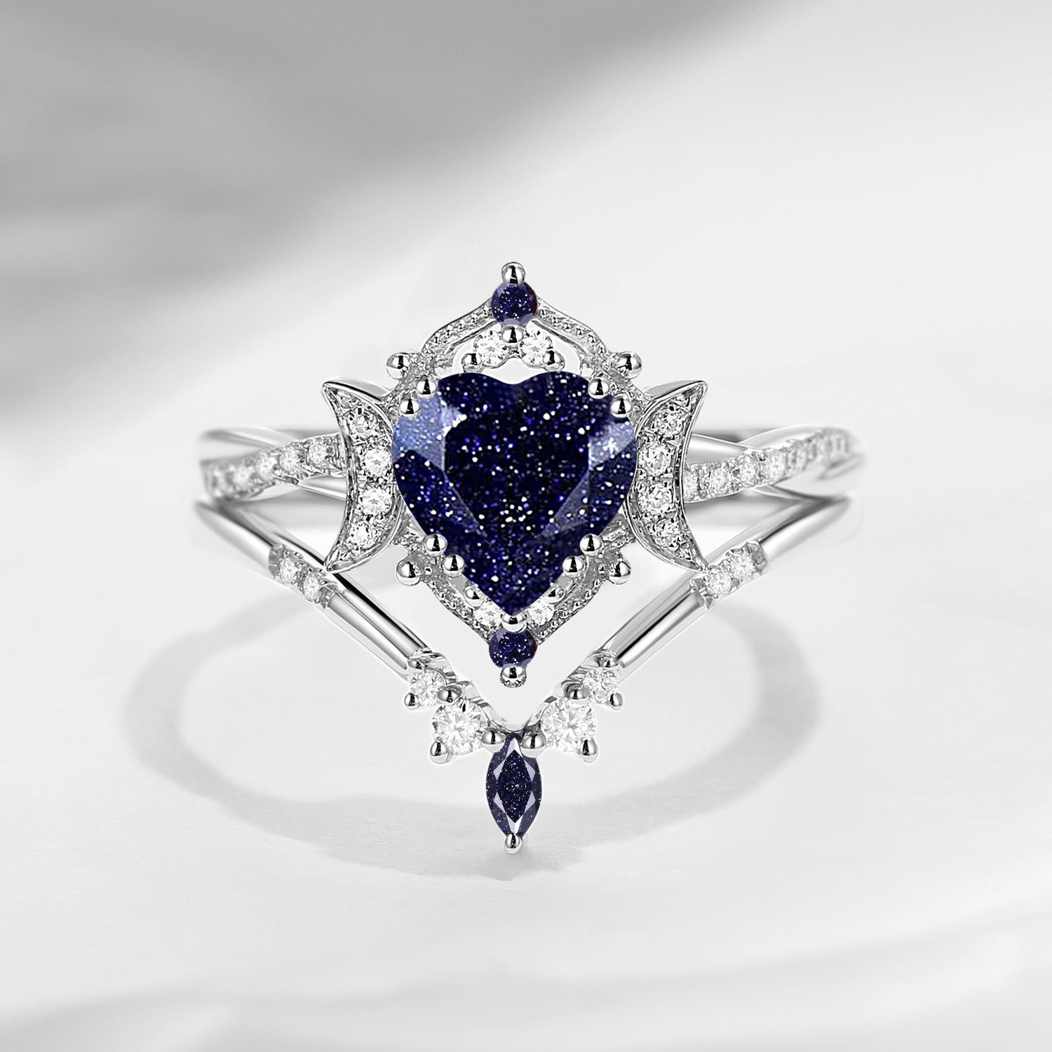Crescent Moon | Heart Shaped Blue Sandstone Engagement Ring Set 2pcs - Alexandria