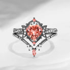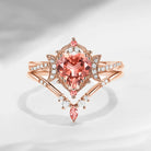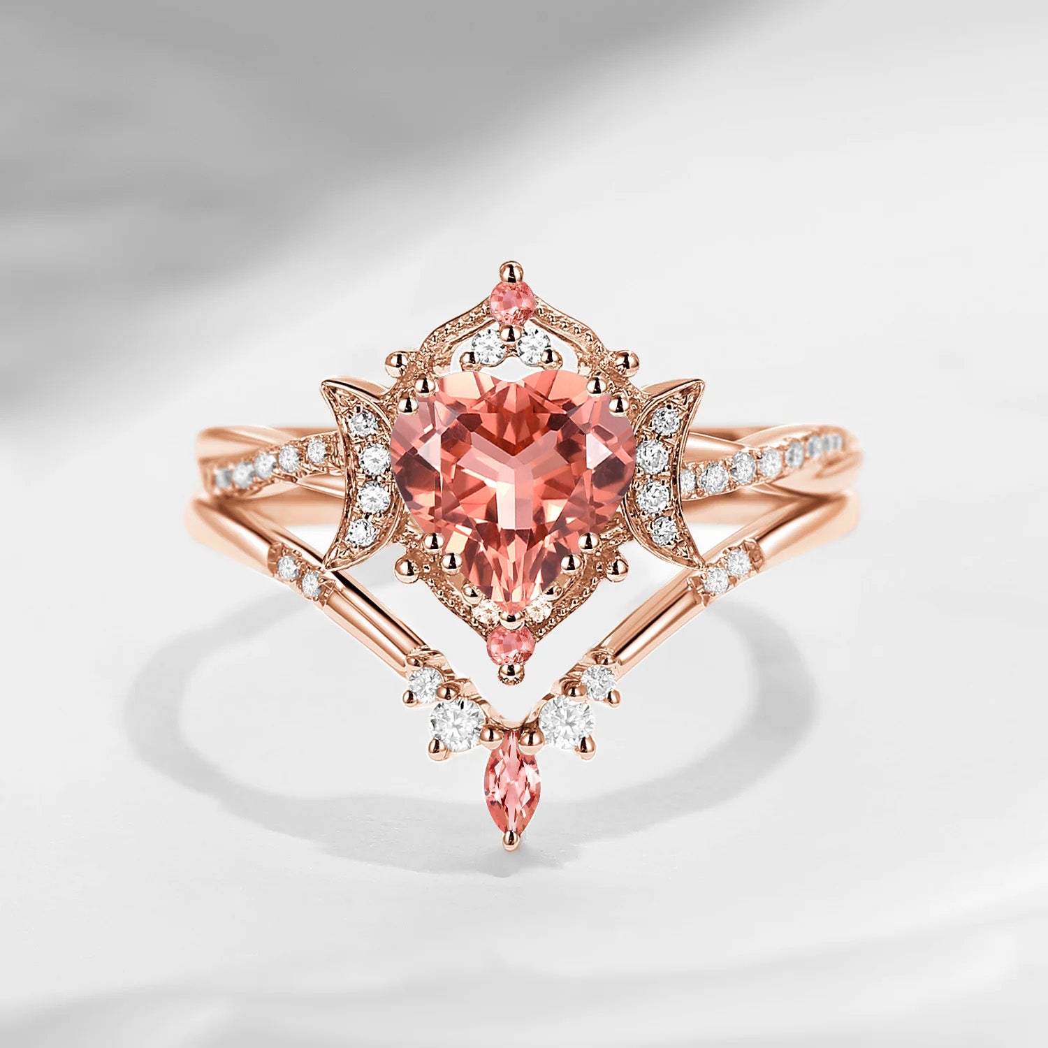 Crescent Moon | Heart Shaped Natural Orange Pink Tourmaline Engagement Ring Set 2pcs - Alexandria