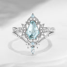 Crescent Moon | Infinity Coffin Natural Aquamarine Twisted Engagement Ring Set 2pcs - Alexandria